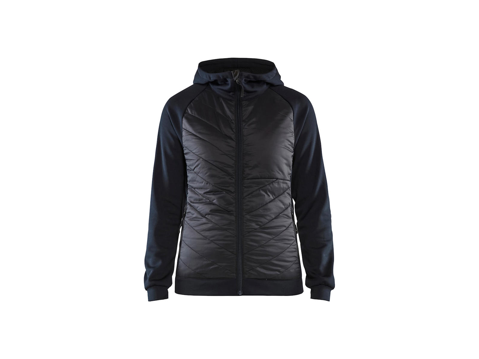 En sweatshirt med lang lynlås designet til kvinder. Fungerer lige så godt som en jakke eller trøje, afhængigt af hvad du laver. Denne jakke-trøje har en quiltet forside og er ikke foret.