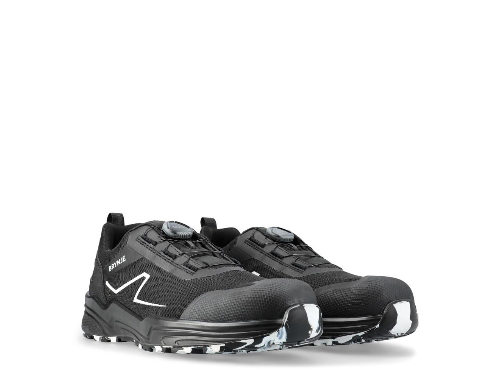 Sporty udseende sikkerhedssko certificeret efter de nye standarder i 2022. Overdelen i åndbar, ventilerende mesh gør skoen perfekt til varme fødder og varme dage. Det smarte BOA® Fit System, som spænder og løsner skoen, sidder ovenpå PrimeFIT-pløsen, der med et tyndt design former sig efter foden for et behageligt fit. ProNosen af KPU, et ekstra slidstærkt materiale, er godkendt efter 2022-standarden og anbefales til knælende arbejde. Sålen, af ekstra skridhæmmende og stødabsorberende PU/gummi for et godt fodfæste, er sammensat af to forskellige farver. Det får skoene til at skille sig ud, camouflerer skidt og snavs, og gør hver en sko helt unik. En konstruktion i sålen mindsker belastningen på hælknoglen og fordeler trykket over hele hælen. En blød, åndbar og stødabsorberende indlægssål giver god komfort og mindsker belastninger på led, fødder, ben og ryg. ESD-godkendt og PVC-fri.