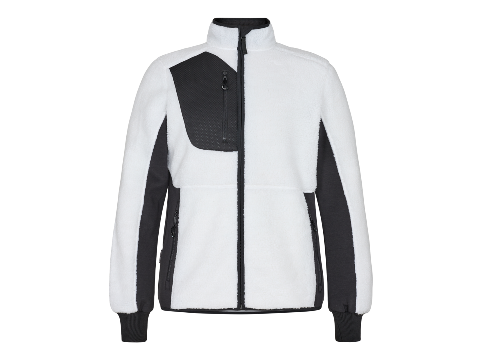 Smart og lækker fiberjakke med behageligt strækfor, der gør den mere anvendelig som overgangsjakke. Jakken har høj krave og lynlås i front. Strækbart panel i ærmer/siden. To stiklommer samt brystlomme – alle med lynlås. To store indvendige lommer lukket med velcro. Jakken har elastisk afslutning i bunden samt ribafslutning ved ærmerne.