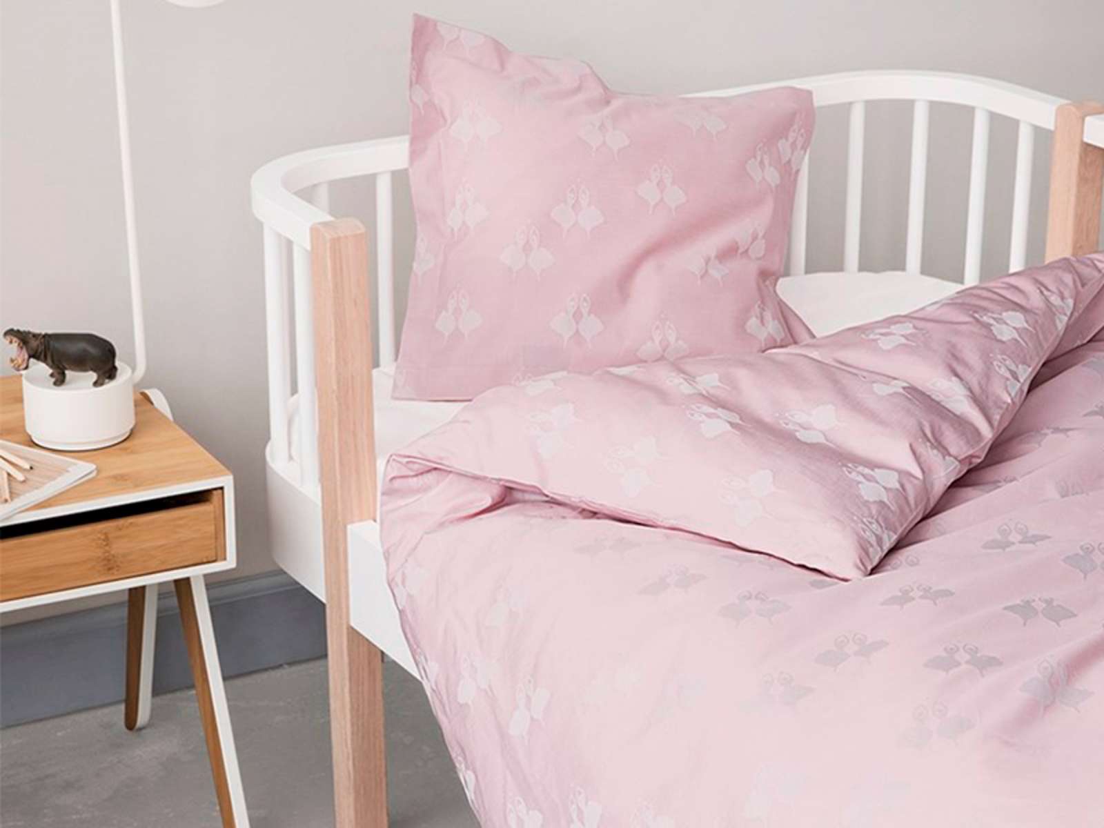 Ren hverdagsluksus, prydet med de fineste danserinder med inspiration fra et af H.C. Andersens verdensberømte eventyr. FAIRYTALE designet er baseret på Den Standhaftige Tinsoldat, fortolket af den danske billedkunstner Sonia Brandes. Hun har gennem årtier udfoldet sig inden for kunsten at klippe i papir og har med papir og saks skabt et unikt papirklip i form af den nydelige danserinde fra H.C. Andersens eventyr, som nu er vævet så smukt ind i sengetøjet. I den sarte rosa pastelfarve sender sengetøjet de små og lidt større piger af sted til drømmeland svøbt i den ypperste, bløde kvalitet og poetisk design. Baby lagenet fra Georg Jensen Damask i en solid lærredsvævning fuldender udtrykket. Mål: Dyne 70x100cm, Pude 40x45cm og Lagen 100x160cm.Mål: Dyne 70x100cm, Pude 40x45cm og Lagen 100x160cm.
