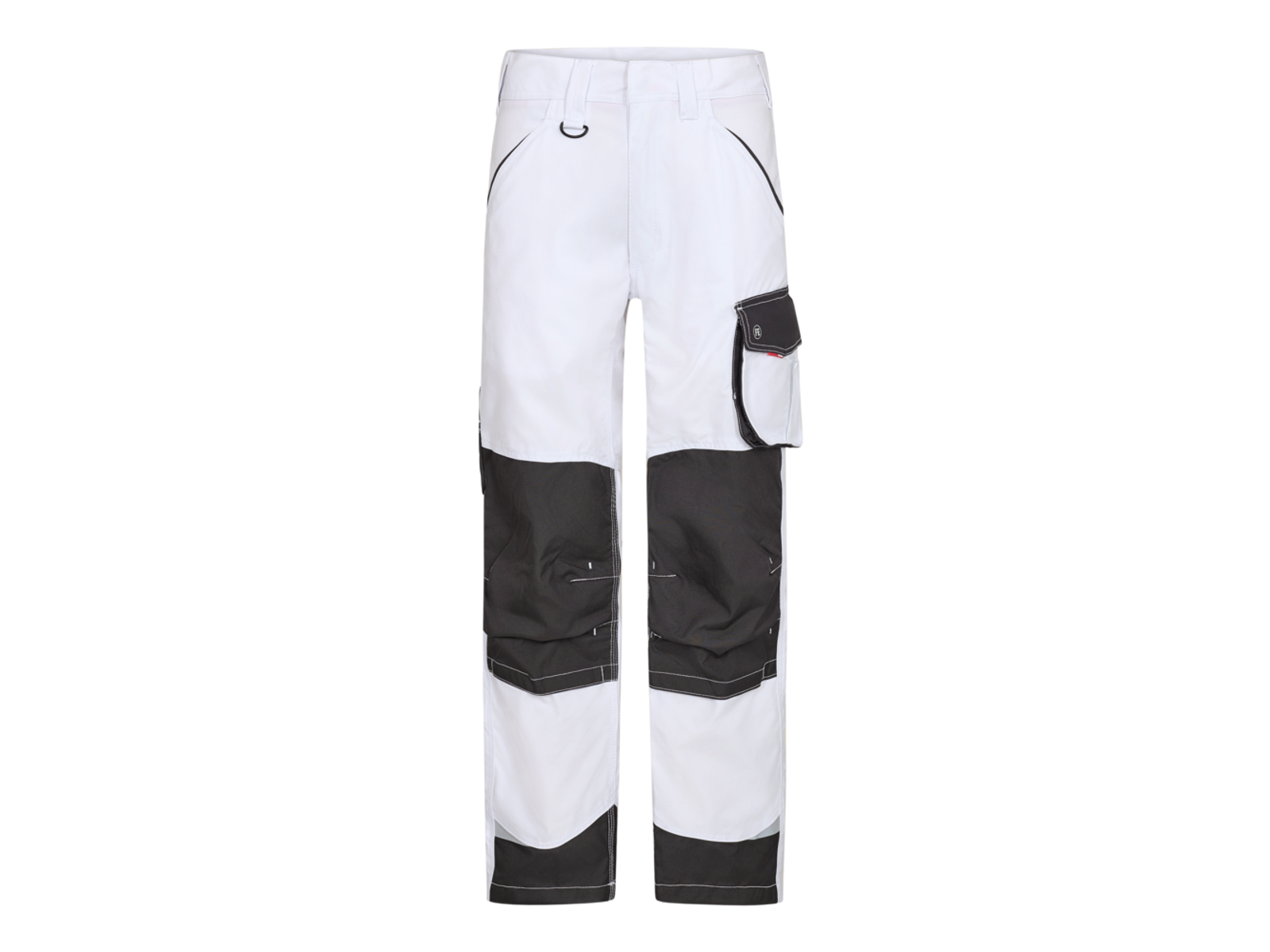 Funktionel arbejdsbuks med mange detaljer. Optimal pasform med bl.a. ergonomisk formet knæparti og panel i indersøm, der giver en behagelig skridtsøm. To rummelige skrålommer foran. Strop med D-ring til fæstning af f.eks. ID-kort foran. To rummelige baglommer med klap og velcrolukning. Lårlomme med lynlåslomme til f.eks. mobiltelefon samt ekstra mindre lomme. Lårlommen har box-effekt, hvilket gør den meget rummelig og endvidere har den løsthængende bund for øget bevægelighed. Tommestoklomme med ekstra inddelinger og forstærket bund. Også tommestoklommen har frithængende bund for øget bevægelighed. Knæforstærkning/knælomme med velcrolukning forneden samt to indstillingsmuligheder til knæpude. Forstærkning i bunden af buksebenene både bagpå og foran for ekstra slidstyrke. Reflekser ved knæ og nederst på buksebenene for øget synlighed. Egnet til industrivask.