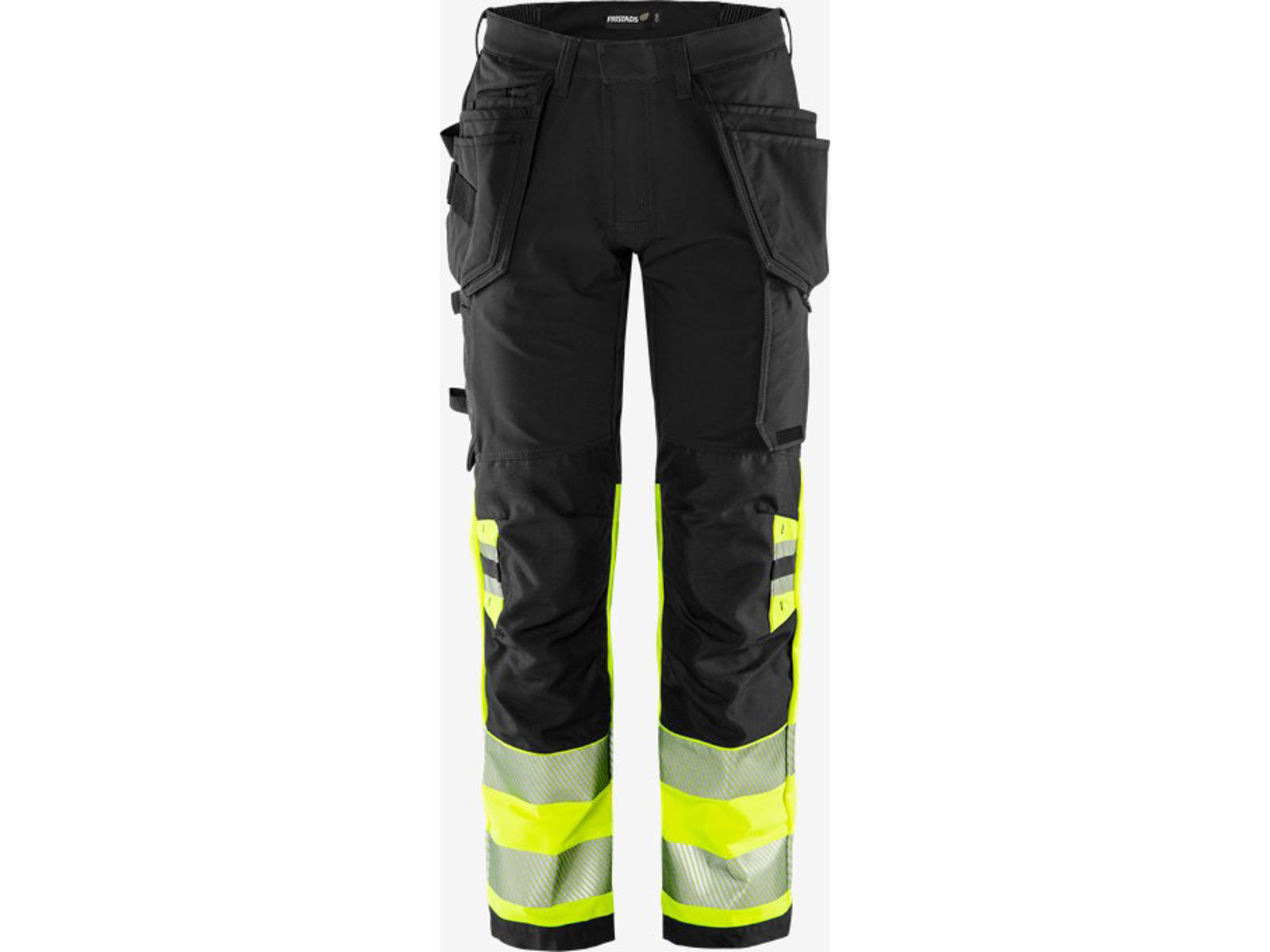 En del af Fristads Green kollektion / Bæredygtig / 4-vejs stretchmateriale / Ribstrikkede stretchpaneler i taljen / Holdbar ripstop 4-vejs stretch bagpå / Skjult frontknap / CORDURA®-forstærket løshængende forlommer, en med lynlåslomme, 3 små lommer og værktøjsstrop, den anden med ekstra lomme / D-ring under løs hængende lomme / 2 forlommer / 2 baglommer, den ene med lynlås / Dobbelt forstærket skridsøm / Hammerstrop / CORDURA®- forstærket lomme inkl. værktøjslomme, blyantslomme, knapper og løkker til kniv / Benlomme med lynlås, lynlåslomme og D-ring / CORDURA®-forstærkede knælommer med indvendig åbning / Højdejustering til knæpuder i knælomme / CORDURA®-forstærket benende / Skjult støvlekrog / Godkendt i henhold til ISO 20471 kl. 1, EN 14404 sammen med knæpuder 124292 og EN 13758-2 UPF 40+ Solar UV-beskyttende egenskaber / Godkendt efter 50 vaske / Med EPD (miljøvaredeklaration) - registreringsnummer 3887 via environdec.com / OEKO-TEX® certificeret.