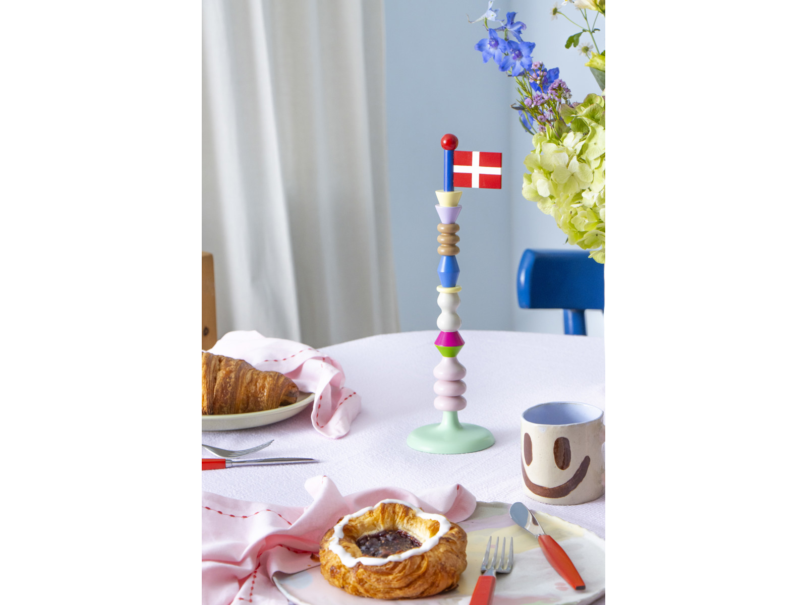 Flaget måler 30 cm i højden. Diameter på bund er 9 cm.