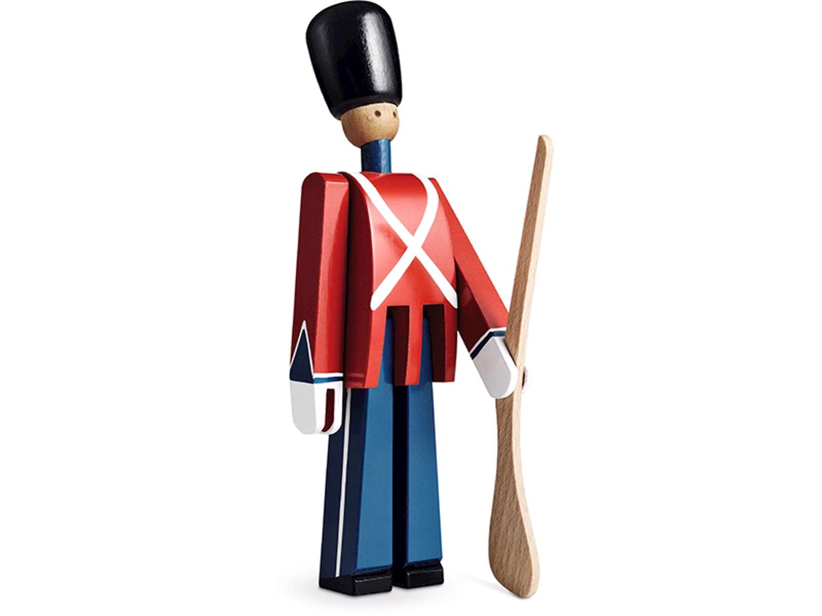 Inspireret af et af Danmarks nationalsymboler fra Amalienborg Slotsplads skabte Kay Bojesen i 1942 sine håndmalede gardere. Lige siden har Menige garder med gevær været stolte repræsentanter for dansk kvalitetsdesign. En god gaveide for livet til både børn og voksne.. Figuren måler 22,5 cm i højden.