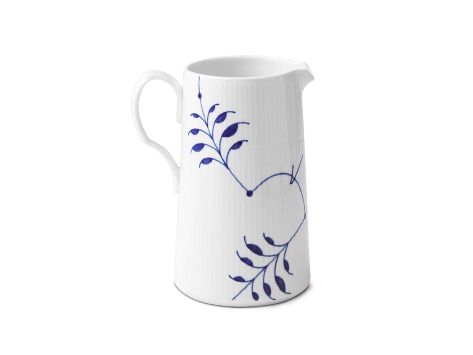 Den dybe koboltblå farve på det håndmalede mønster fra Blå Mega Riflet gør enhver drik indbydende, hvad enten kanden bruges til saftevand eller varm kakao. Blå Mega Riflet er på en gang velkendt og forfriskende. Stellet er født af en modig nyfortolkning af det ikoniske Musselmalet Riflet og fortryller med sine grafiske og forstørrede sektioner af det musselmalede mønster. Siden Blå Mega Riflet blev designet i 2000 er stellet vokset sig til en ny klassiker inden for dansk design, og det iøjnefaldende stel er smukt i sig selv og i kombination med særkollektionen Mega Rose eller andre Royal Copenhagen stel.