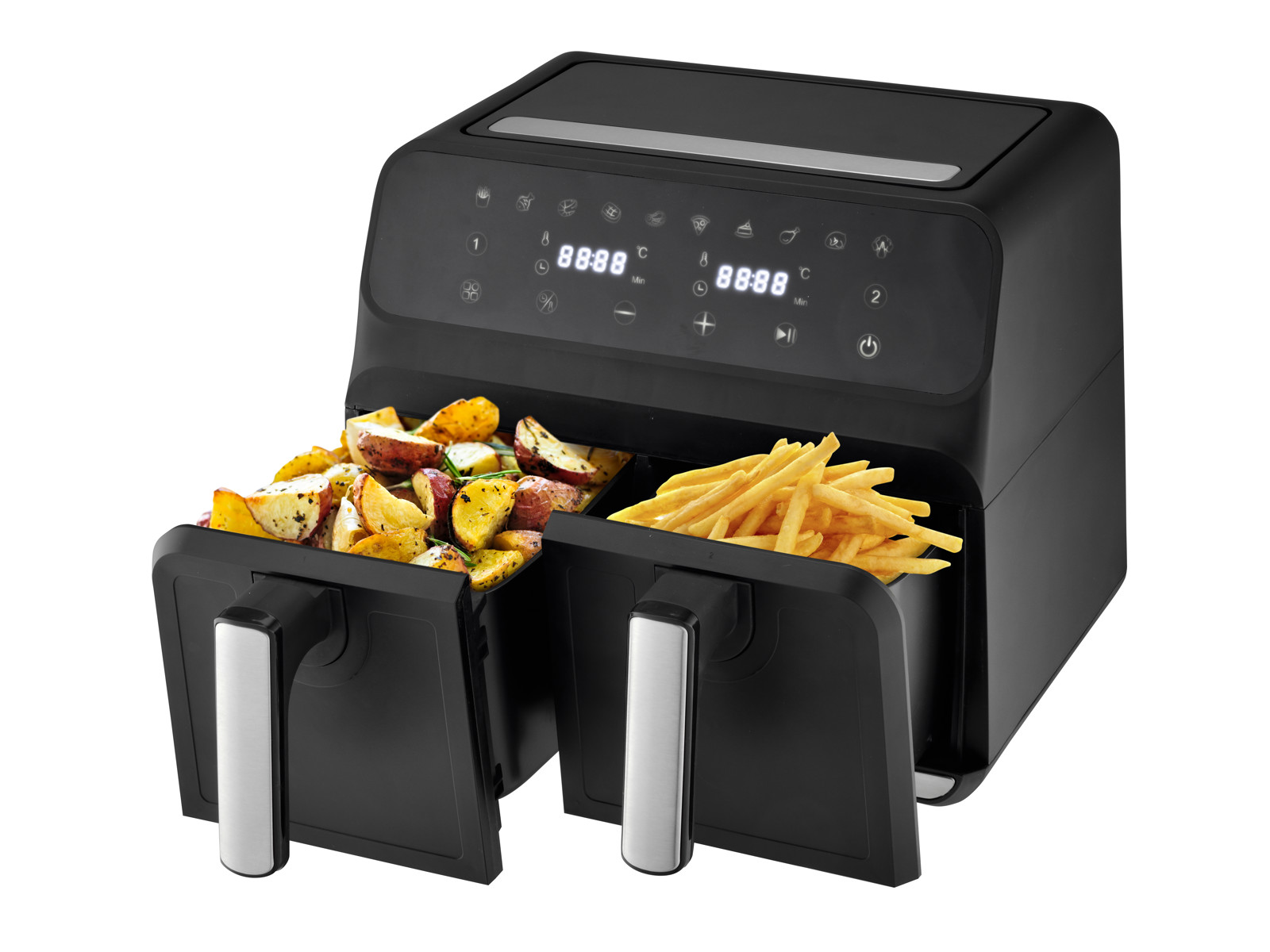 Meget mere end en airfryer - du kan airfrye, stege eller genopvarme din mad. Med 2 separate og kontrollerbare airfryerkurve, der har hver deres egen blæser og varmelegeme, så kan du nemt tilbede et helt måltid uden at skulle have gang i flere maskiner.