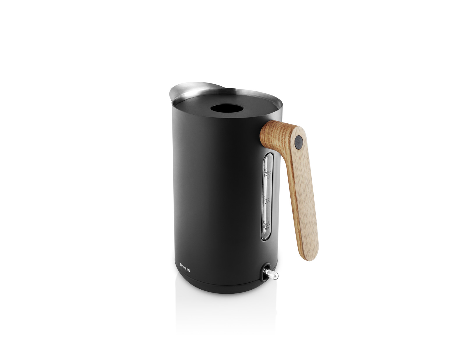 Den elegante elkeden fra Eva Solo pynter med sit nordiske design på køkkenbordet. Kedlen er 100 % drypfri og udstyret med automatisk sluk. Elkedlen har 360 graders mobilitet og er ledningsfri. Vandet påfyldes direkte gennem låget. Indvendig vandmåler.