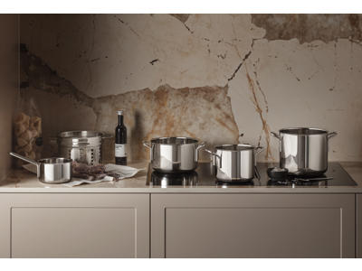 #Lion Sabatier Knivsæt 6 dele, urte, tomat, santoku, brød og kokkekniv samt stegegaffel i stål/sort, Pluton