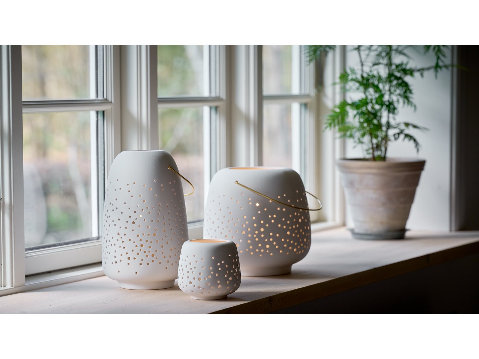 1 stk. Uyuni lille, 1 stk. mellem & 1 stk. stor keramik lanterne, LED
