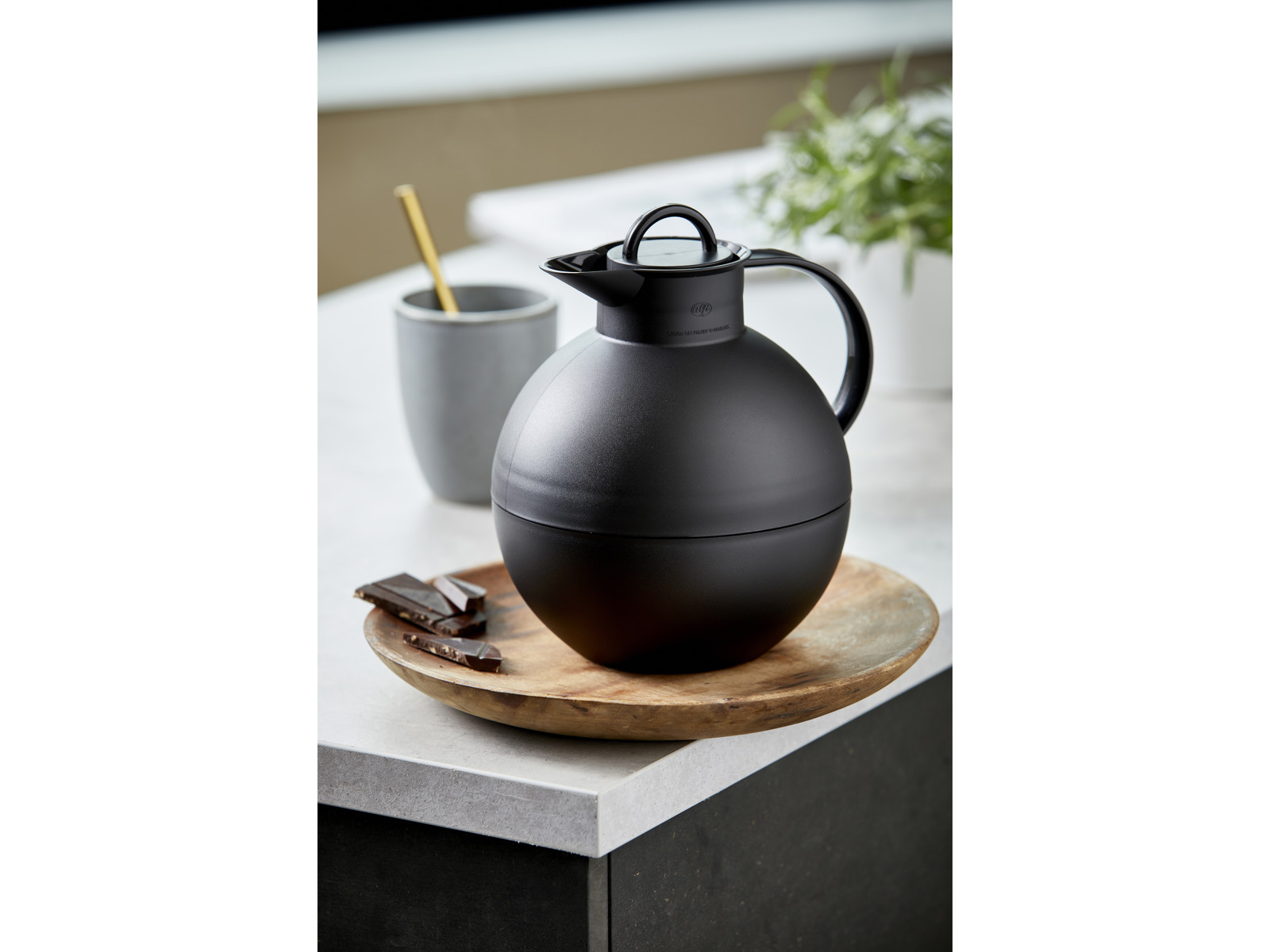 Den klassiske kuglekande er designet af Ole Palsby i 1985, der navngav den Modern Classic No. 1. Kuglekanden er verdens mest solgte termokandedesign, og den har vundet adskillige priser og været udstillet på Museum of Modern Art (MOMA) i New York. I dag fremstår den runde klassiker ligeså elegant, tidssvarende og æstetisk fængslende, som da den kom frem for mere end 30 år siden. Kuglekanden holder indholdet varmt/koldt i lang tid, da kuglen er den geometriske form med den største volumen og mindste overflade. Dobbeltvægget AlfiDur-indsats i isolerende og hærdet vakuum-glas. Praktisk skruelåg. Holder væske varmt i 12 timer og koldt i 24 timer. Fremstillet i Polen.