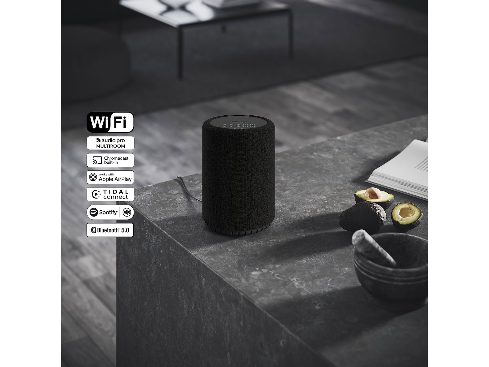 Audio pro A10 MkII er en multirumshøjttaler med et beskedent fodaftryk, som vil fylde dit hjem med vellyd. Som de øvrige modeller fra audio pro, har A10 MkII også gjort sig positivt bemærket hos verdenens Hi-Fi anmeldere. B.la. skriver The Review studio; Alt i alt elsker jeg Audio Pro A10 MKII-højttaleren, den er nem at linke til min telefon og har en vidunderlig lydkvalitet og ville være en fantastisk tilføjelse til ethvert hjem. Med WiFi får du bedre lyd, da højttaleren er koblet op på hjemmenetværket. Lyden skal ikke komprimeres på samme hårde måde som Bluetooth. Du kan lave ægte multi room, styre højttaleren via en app eller stemmestyring med din favorit assistent.