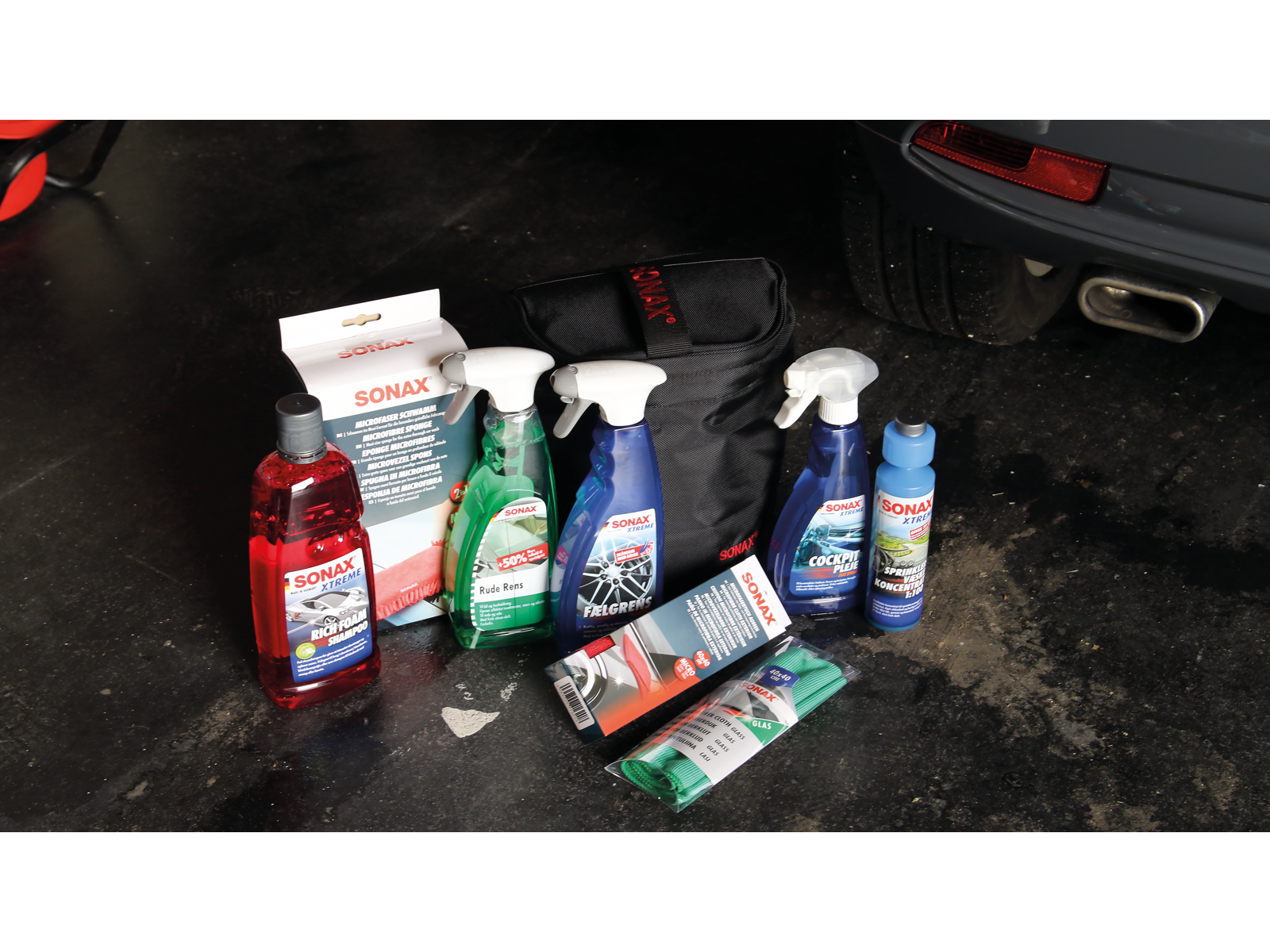 Denne komplette pakke indeholder alt, hvad du behøver for at få et skinnende resultat, uanset om du står over for indvendig eller udvendig pleje. Med en praktisk plejetaske har du nemt adgang til Sonax Xtreme fælgrens, cockpitpleje, RichFoam shampoo og ruderens, som garanterer effektiv rengøring.