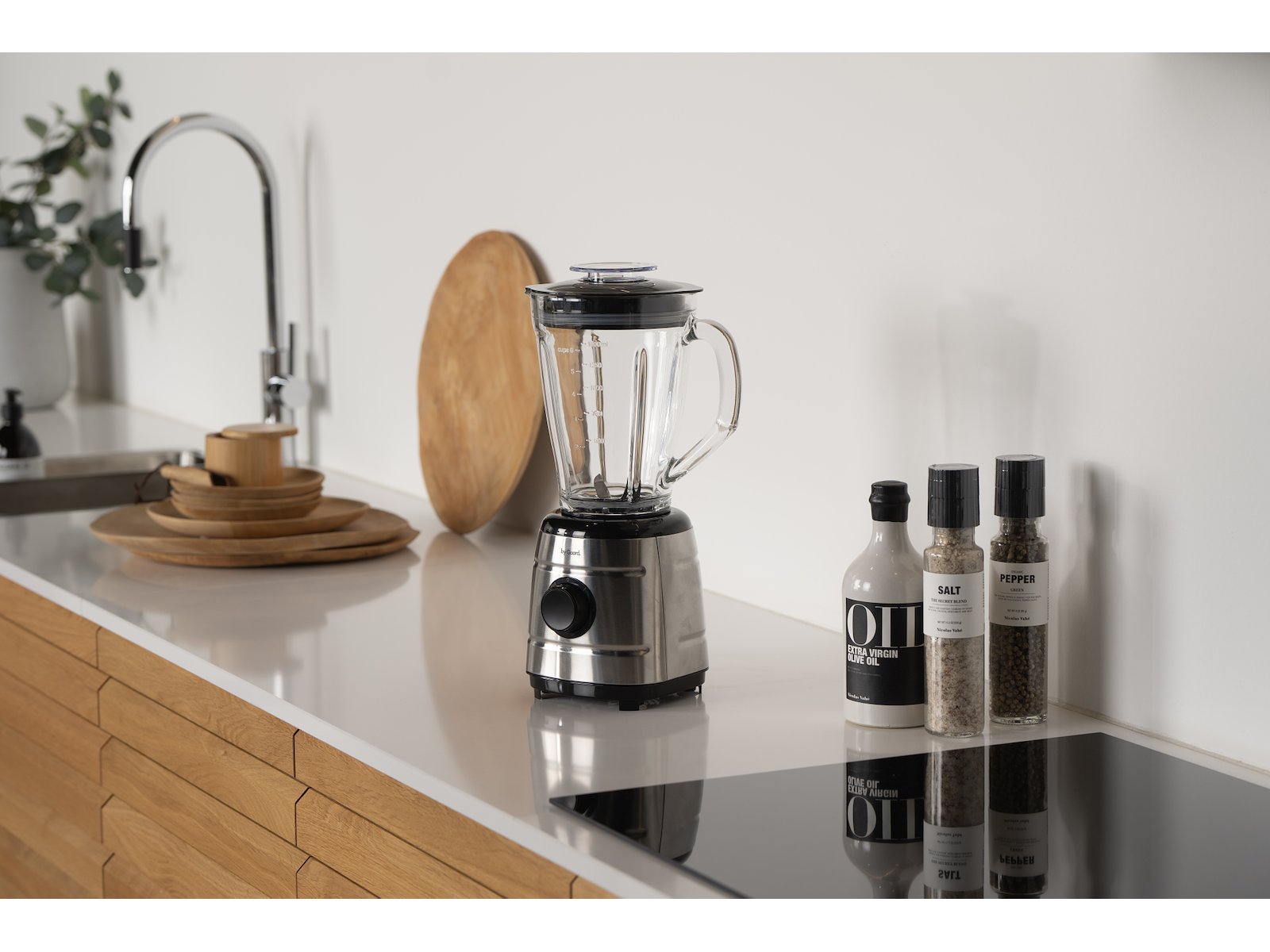 Denne blender kombinerer kraft og stil med sin 500W motor og rustfri stålfinish. Den rummelige 1,5 liters glaskande giver rigelig kapacitet til store portioner, mens de 2 hastigheder og pulsefunktionen sikrer perfekte resultater hver gang. Ideel til alt fra daglige smoothies til specielle supper, gør den madlavningen nem og effektiv.