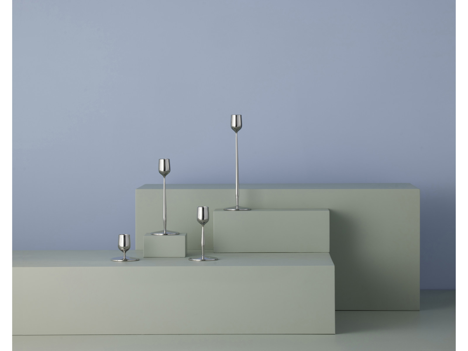 Gense Dorotea lysestager. 4 stk. lysestager i blankt stål, H 5,5, 12, 18 og 23,5 cm.