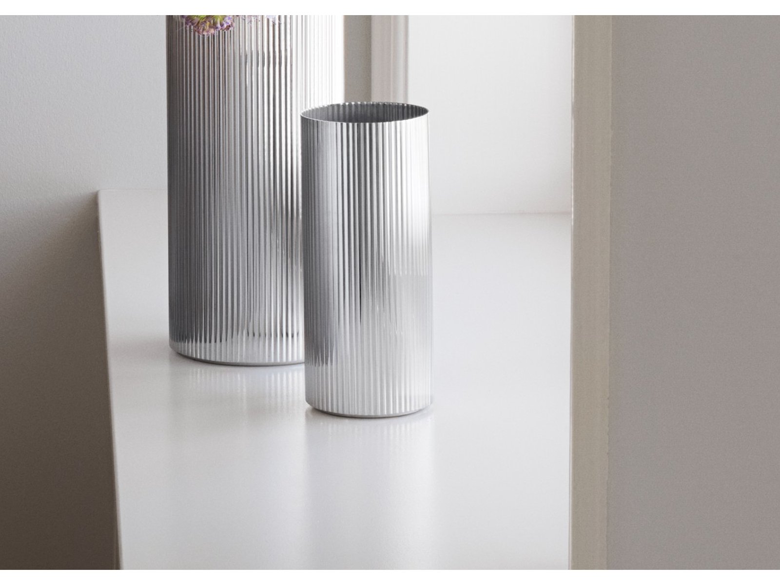 Art Deco-periodens karakteristiske riflede udtryk genoplives i denne vase, der i traditionen for formfuldendt skandinavisk design fremstår som vintage Georg Jensen.