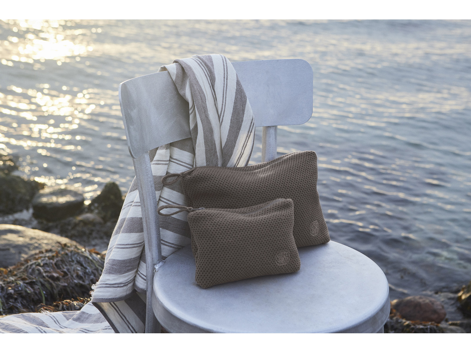 Det perfekte sæt til weekendturen eller en lang dag på stranden. Eksklusivt Georg Jensen Damask hammanbadelagen plus Honeycomb toilet taske og kosmetikpung i honeycomb-vævet tekstil. Badelagnet er stort nok til at svøbe sig i og blødt nok til at give fornemmelsen af spa. Toilet taskerne er praktiske i brug og pæne på badeværelset. Alle produkter er vævet i 100 % bomuld og OEKO-TEX® certificeret.