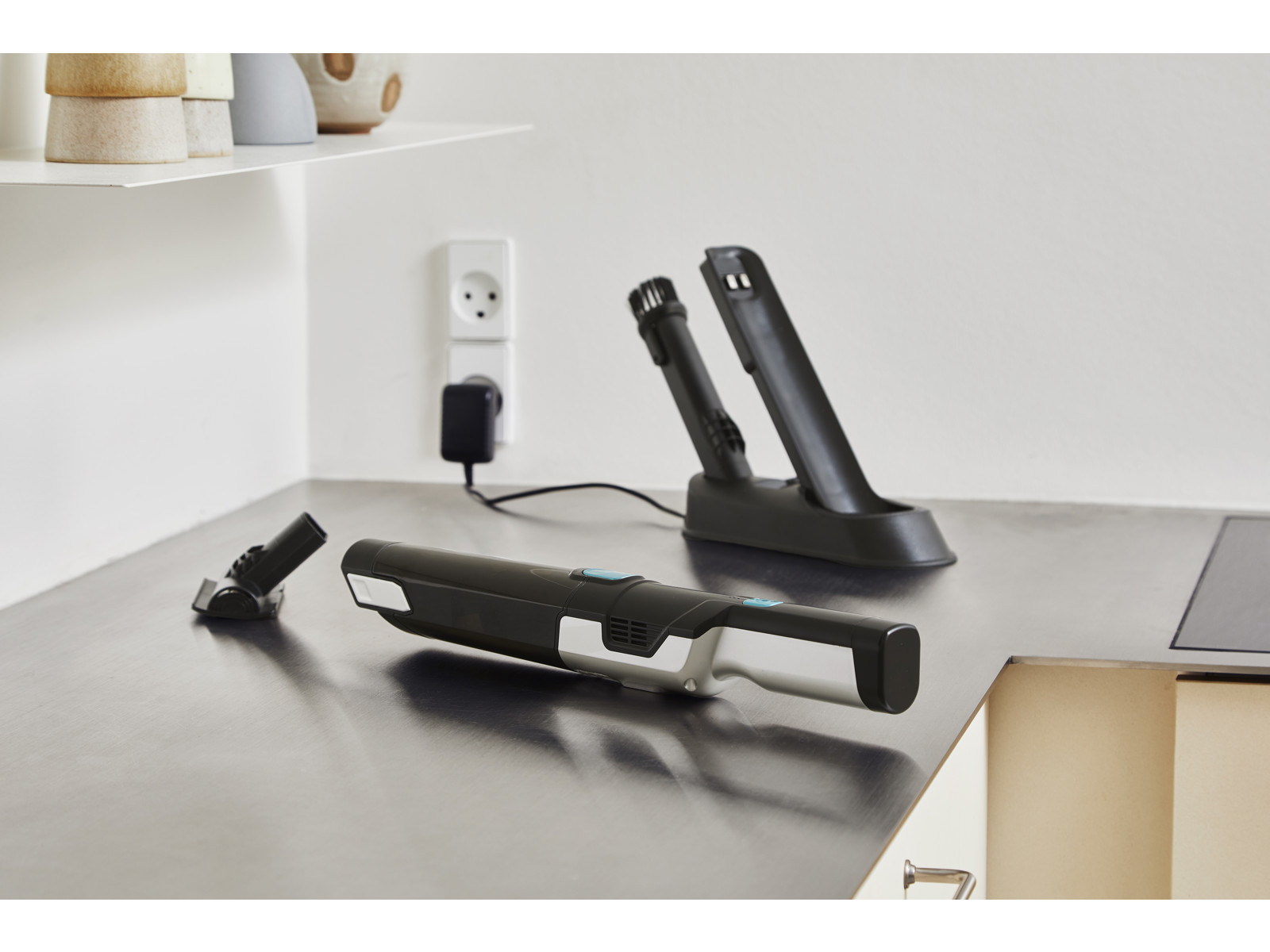 Støvsugeren er udstyret med et genopladeligt Lithium batteri på 2.200mAh, hvilket giver dig friheden til at tackle de smårengøringsopgaver uden besvær med ledninger. Arbejdstid på 21 minuter gør at du nemt fjernestøv og snavs fra bordet, sofaen eller andre overfladermed lethed.