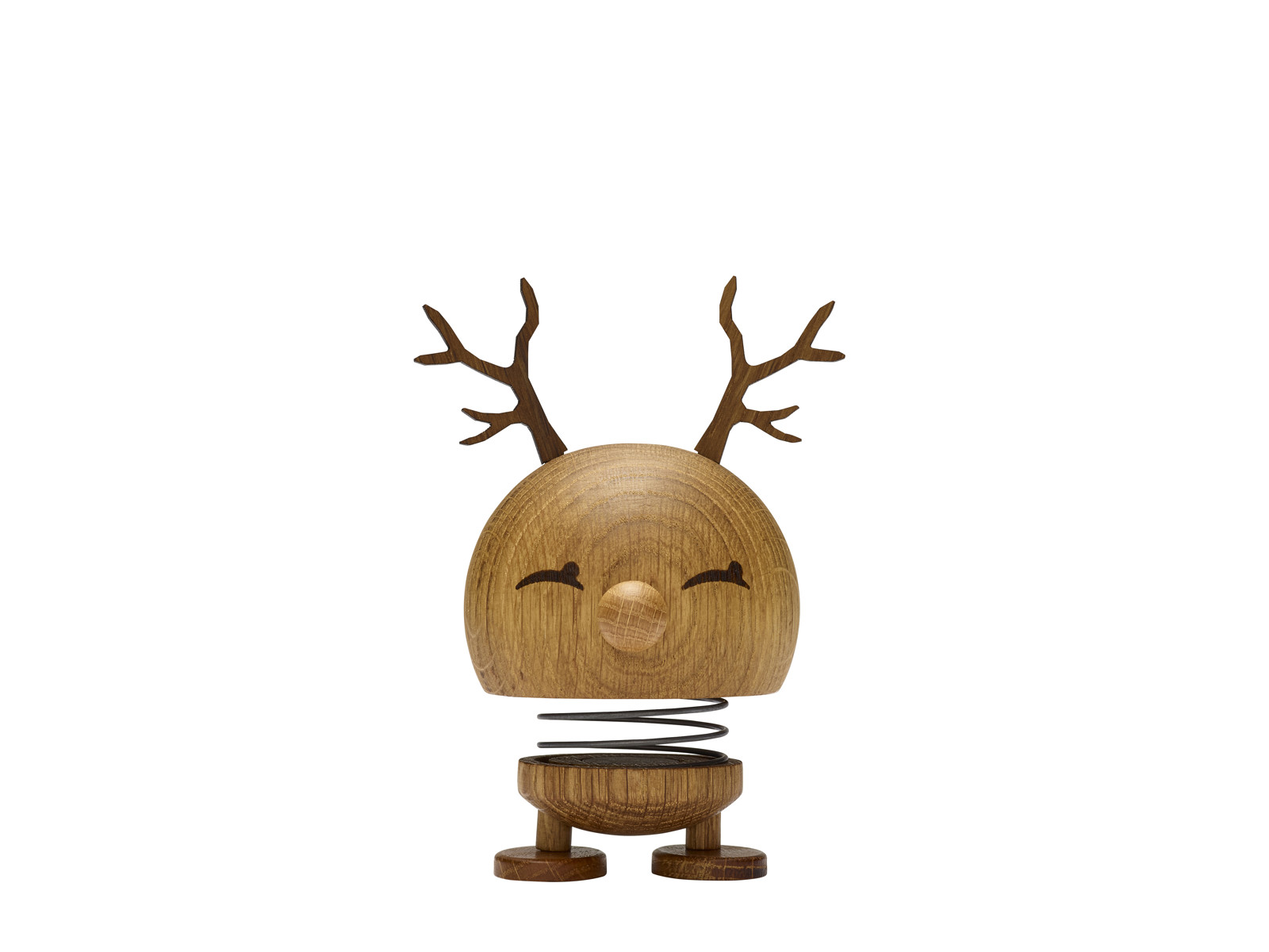 Julen er smilenes fest, og vores muntre rensdyr i egetræ skal nok få smilene til at brede sig i den glade højtid. De er selvfølgelig oplagte som julepynt, men geviret er aftageligt, så Hoptimisten kan sagtens forblive på hylden året rundt.