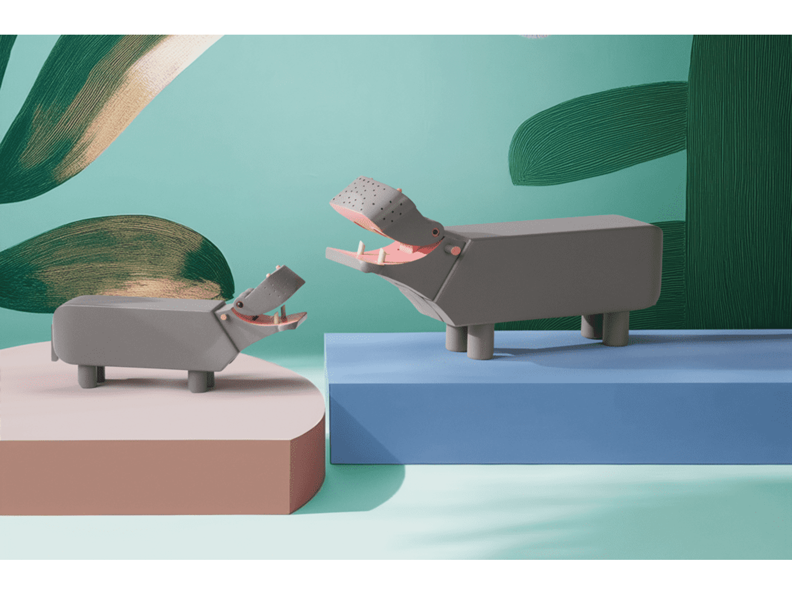 I modsætning til de fleste andre af Kay Bojesens trædyr, der oftest ses i bløde og runde former, er Flodhesten noget mere firskåren i designet med overvejende rette og lige linjer – til gengæld brillerer den med et stort og kærligt smil og masser af power og glimt i øjet. Og så har Flodhesten det der umiskendelige udtryk af omsorg og harmoni. Ja, det er nærmest som om, at den stærke træfigur kommunikerer, ‘stol trygt på mig, jeg har altid din ryg’. Ifølge arkiverne havde Kay Bojesen selv en grå flodhest stående på sit skrivebord, og den runde fødselsdag fejres med to jubilæumsudgaver i FSC®-certificeret bøgetræ malet i en eksklusiv grå farve – en rigtig flodhestefarve – mens det store gab malet lyserødt.