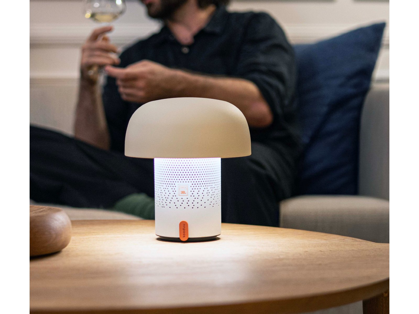 Stilren LED-lampe med indbygget JBL Bluetooth-højttaler, der forener stemningsfuldt lys og kraftfuld lyd i ét kompakt design. Perfekt til hyggelige aftener inde eller ude.