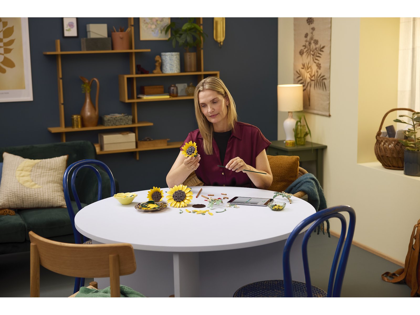 Lad din kreativitet blomstre med LEGO® Botanicals sættet Solsikkebuket (11502), et byggesæt til voksne. Den smukke LEGO buket indeholder 6 solsikker i forskellige blomstringsstadier. Hyg dig med at lave 1 solsikkeknop, 3 nyligt udsprungne og 2 store, åbne solsikker samt 4 eukalyptusgrene. LEGO blomsterne er meget realistiske og har justerbare kronblade og stilke, så spirende blomsterbindere kan arrangere planterne og skabe unikke buketter, der kan udstilles som blomsterdekoration. Solsikkerne kan desuden kombineres med andre LEGO Botanicals sæt (sælges separat) for at lave et unikt og større blomsterarrangement. Solsikker symboliserer positivitet, kærlighed og held, hvilket gør LEGO byggesættet til en betænksom gave til fødselsdage, valentinsdag, mors dag eller housewarming til kvinder, mænd og naturfans. Byggesættet kan også tilgås i LEGO Builder appen, hvor man kan dreje modellen i 3D og følge sine byggefremskridt. Byg-selv-sættet indeholder 686 elementer.