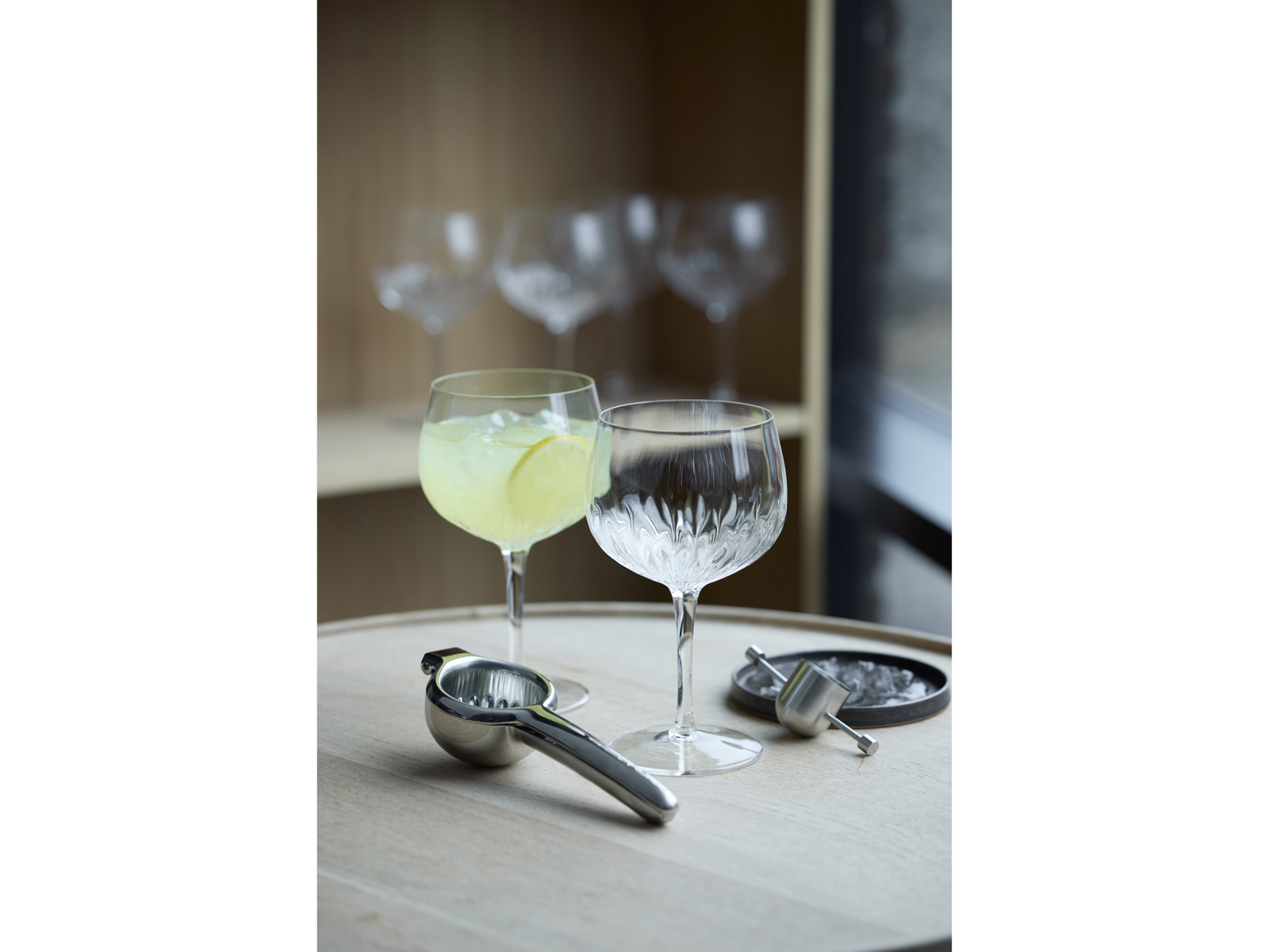 6 stk. smukke Mixology spansk gin & tonic-glas, 80 cl, HOLMs klassiske citruspresser af rustfrit stål samt et 2 cl vippemål i rustfrit stål fra Funktion – alt hvad du skal bruge for at blande en lækker cocktail.