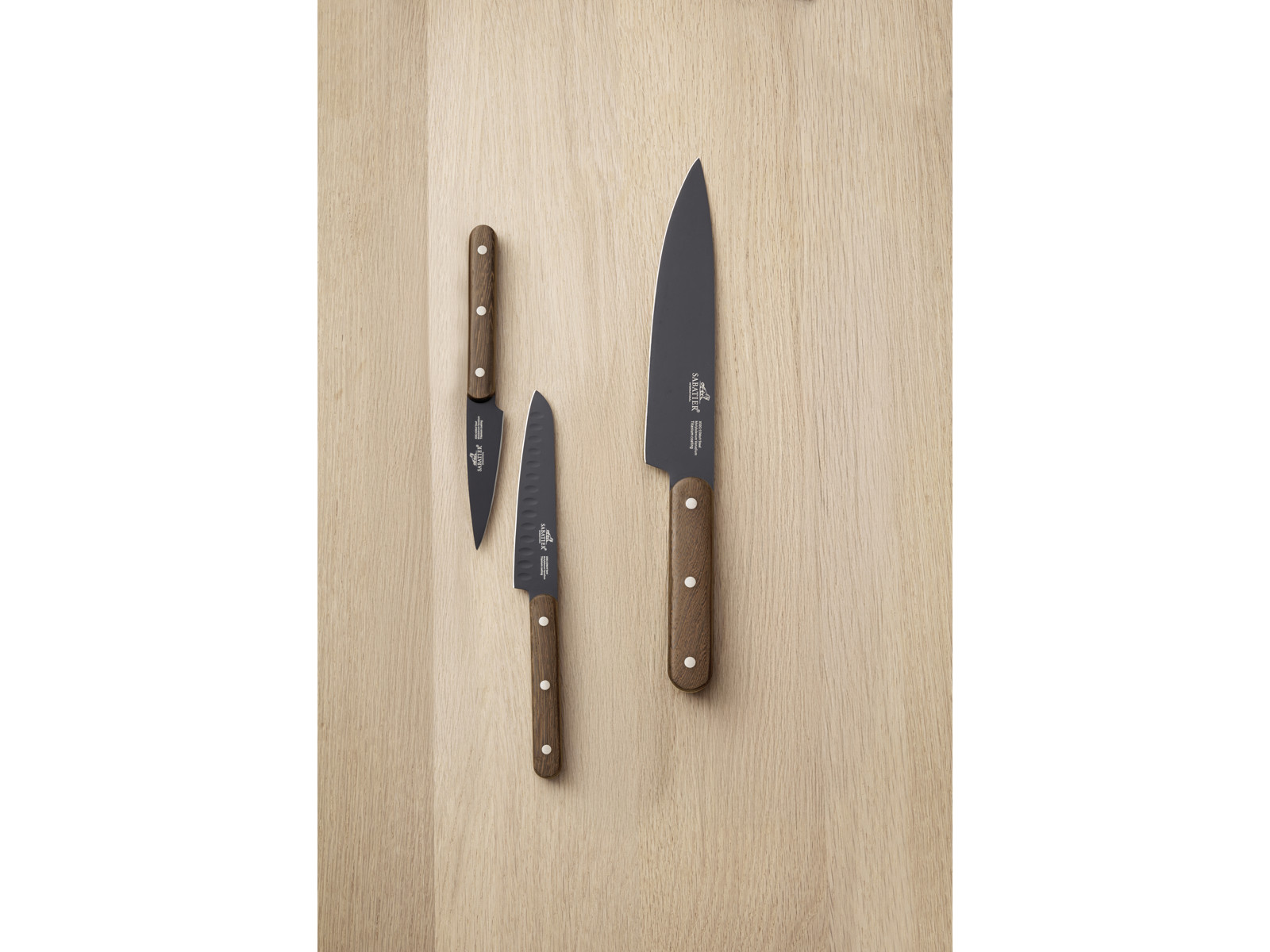 Phenix Walnut knivsæt med tre knive i Lion Sabatiers verdenskendte kvalitet og med håndtag i eksklusivt valnøddetræ. De superskarpe knivblade er skabt af stærkt rustfrit stål (5Cr15MoV) og belagt med titanium. Leveres i fin gaveæske.