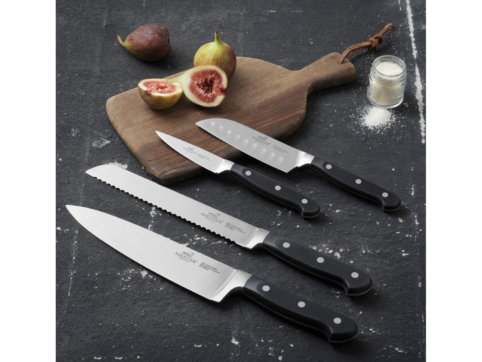 Lion Sabatier Knivsæt 4 dele, urte, lille santoku, brød og kokkekniv i stål/sort, Pluton