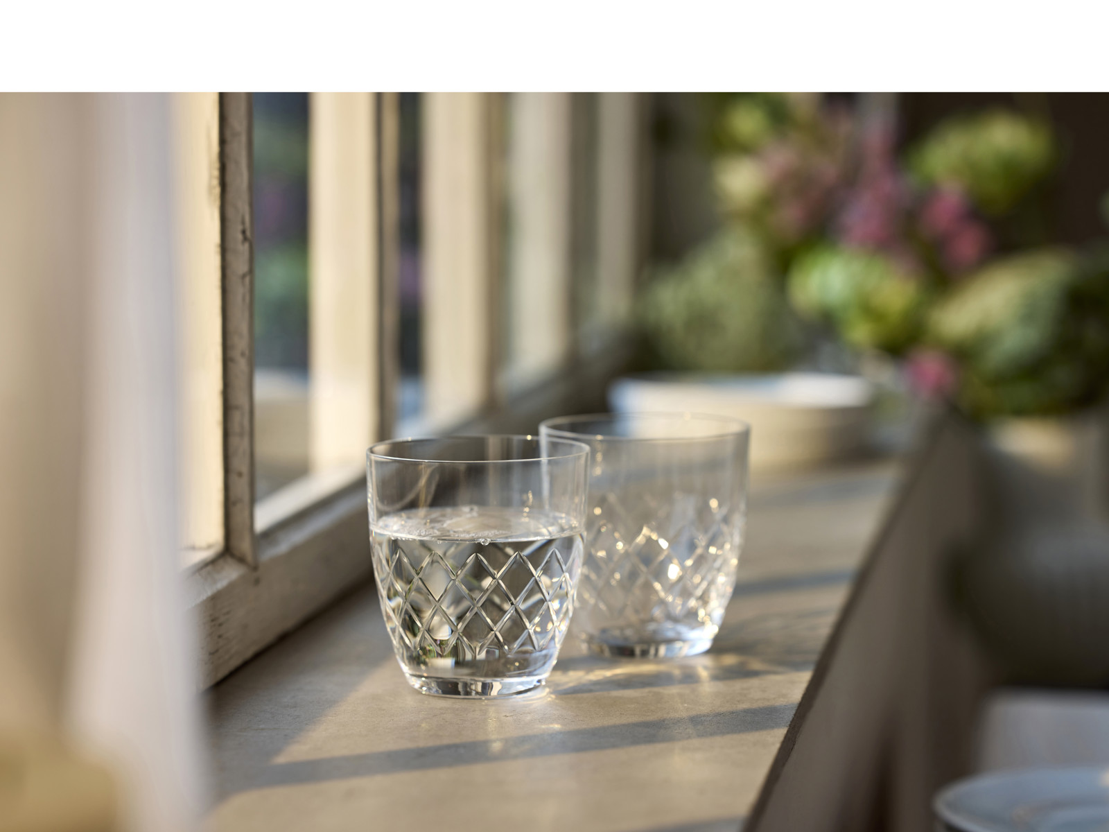 Eaton vandglas, 30 cl, genfortolker det klassiske rudeformede mønster fra det ikoniske Eaton-glas, som Lyngby Glas skabte i 1960’erne. Designets tidløse æstetik forener klassisk charme og moderne stil og tilfører helt særlig stemning ved bordet. Fremstillet i krystalglas tilbyder Eaton en enestående klarhed og holdbarhed, der gør glasset til en fornøjelse at bruge – uanset om det er til en hyggelig hverdagsmiddag eller en festlig aften med vennerne. Eaton produceres i Europa og er skabt med stor præcision gennem en avanceret produktionsproces, der omfatter maskinslibning og polering. Resultatet er en høj klarhed og eksklusiv finish, der fremhæver glassets enkle elegance.