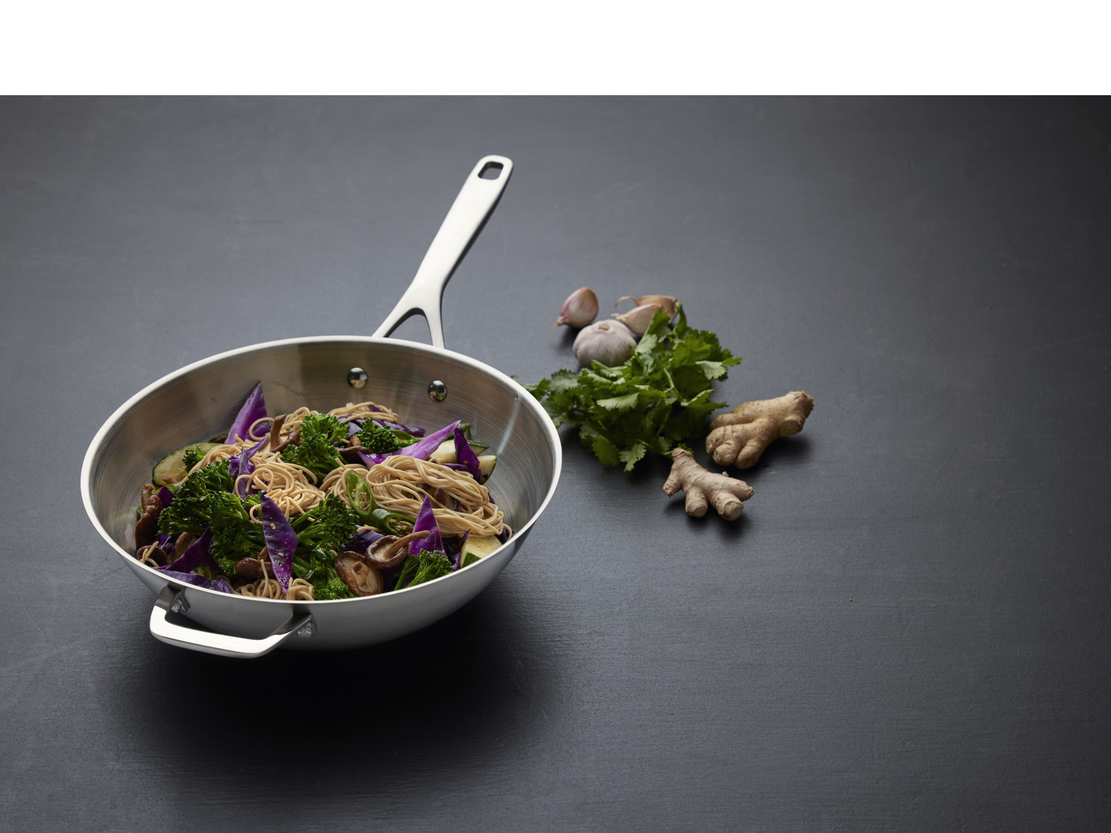 Morsø 30 cm wok i 79NORD-serien. Wokken har satinfinish udvendigt og indvendigt og en bundtykkelse på 6,1 mm. Håndtaget er af stål, og med fuld stålinduktionsbund kan wokken anvendes på alle varmekilder samt ovn op til 200 grader.