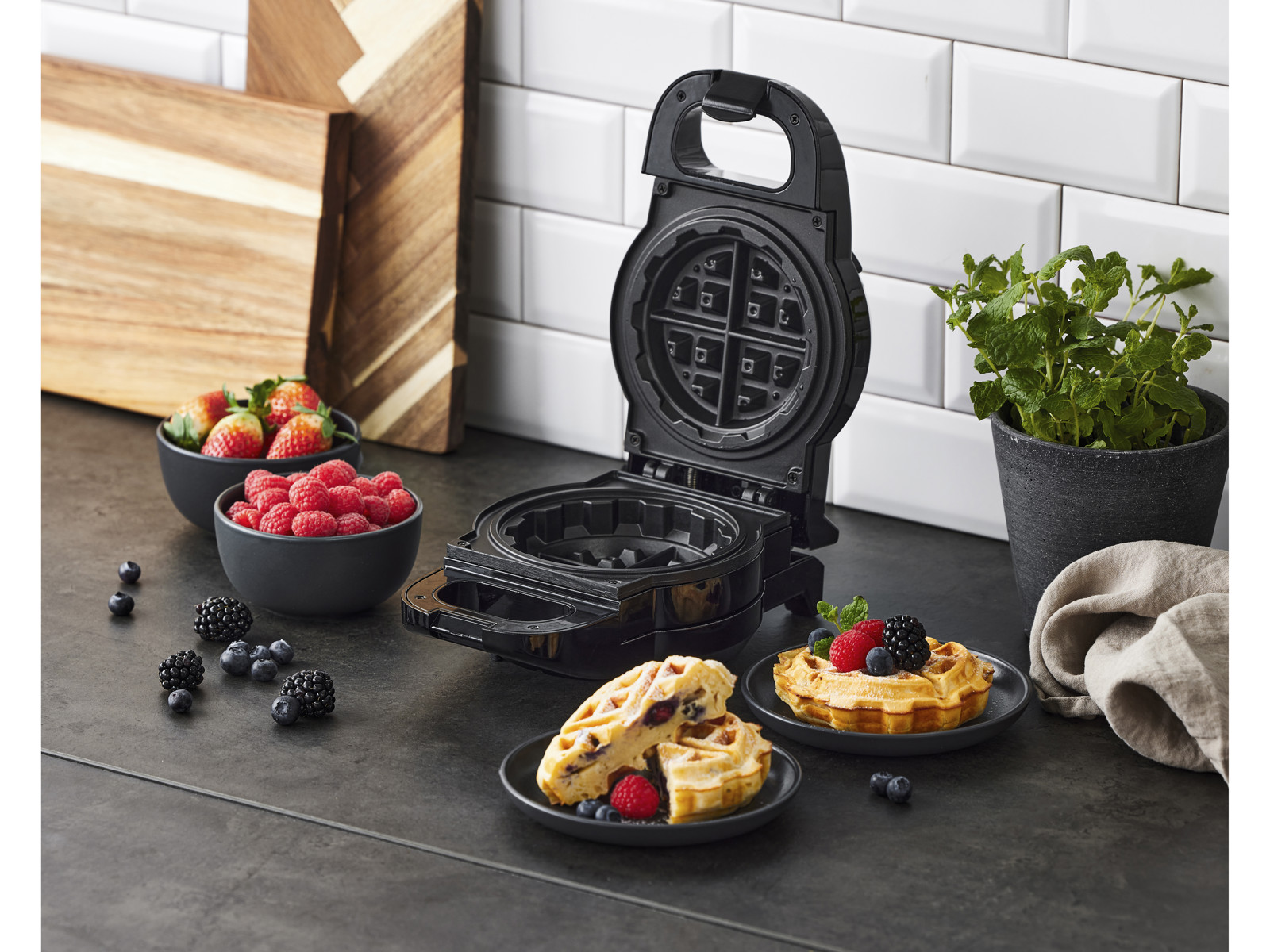 Lav lækre, fyldte vafler, der bliver sprøde udenpå og bløde indeni. Fyld dem med chokolade eller andet lækkert efter smag. Vaffeljernet skal vendes under brug for at sikre en jævn fordeling af dejen. Perfekt til både salte og søde vafler.