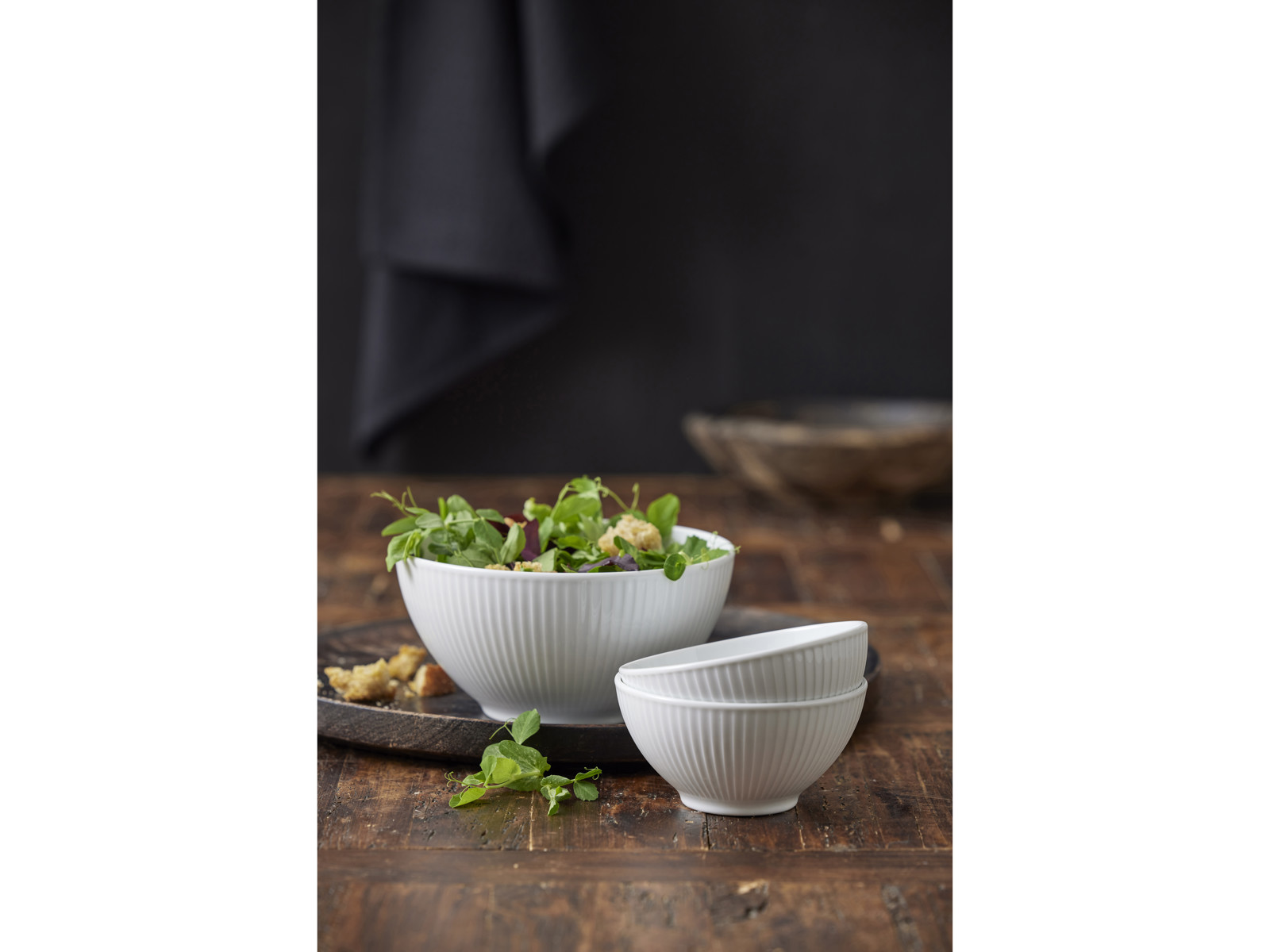 Elegant sæt med en 20 cm skål og to 14 cm skåle i hvid porcelæn.