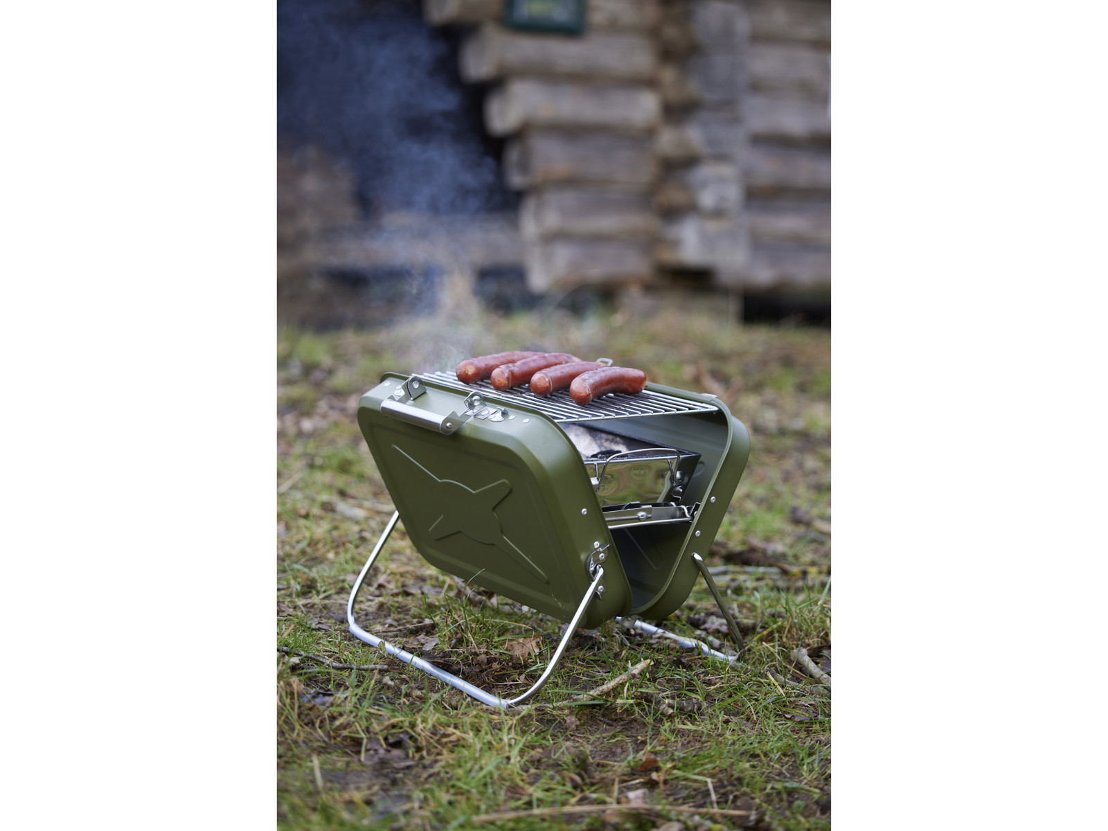 Handy kuffertgrill med grillrist, kulrist, drypbakke. 40 x 31,5 x 32 cm. Rustfrit stål, army.