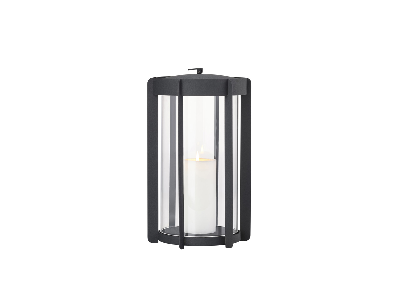 Firefly-lanternerne med glassider findes i to højder, hhv. 25 og 35 cm og er udført i pulverlakeret stål. Topstykket er let at løfte af, når et nyt lys skal sættes i. Du vipper bare den lille silikonestrop op, og lægger den ned igen, når lyset er skiftet. Der er noget tidløst over udtrykket, og designinspirationen er da også hentet flere hundrede år tilbage, hvor datidens vogtere gik med lanterner gennem byerne. Her er en moderne version, der er klar til at kaste hyggelys på terrasser og altaner, når tusmørket melder sig.
