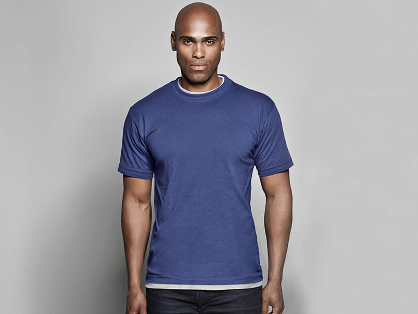 • Klassisk T-shirt med rund hals, firelags halsrib og nakke- og skulderbånd. Forkrympet for stabilitet. Af 100% bomuld.