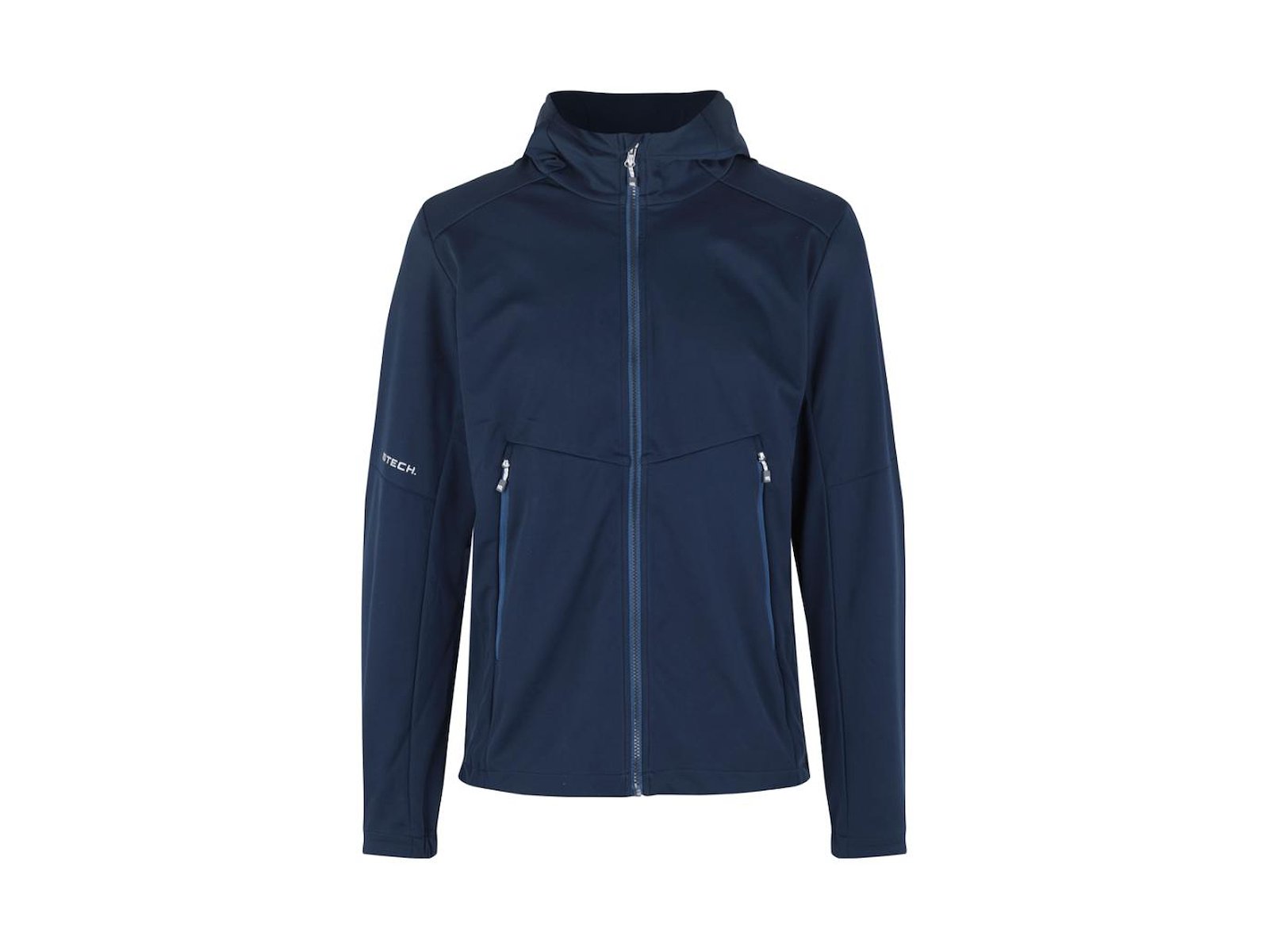 Letvægts softshell jakke i ID Tech® trelags membran kvalitet med strikket overflade, som er let og strækbar. Smarte kontrast lynlås detaljer og kontrast detaljer indvendigt. Hætte med forstærkning af skygge for optimal funktion. To lynlås sidelommer. Ærmer med lille elastik indsats. Indvendig regulering forneden så der kan skærmes for blæst og træk. Tætsiddende model med slank moderne pasform.