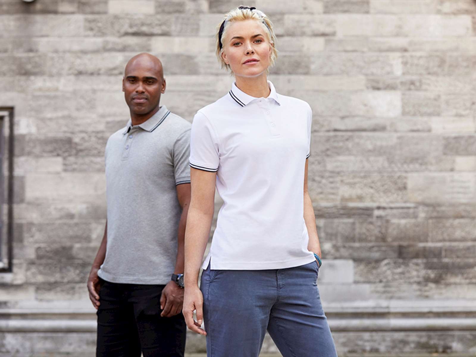 Klassisk poloshirt i piquékvalitet med stretch. Nakkebånd, nakkespejl og stolpe med tone i tone-knapper. Kontraststrib på ærmer og krave. Let figursyet.