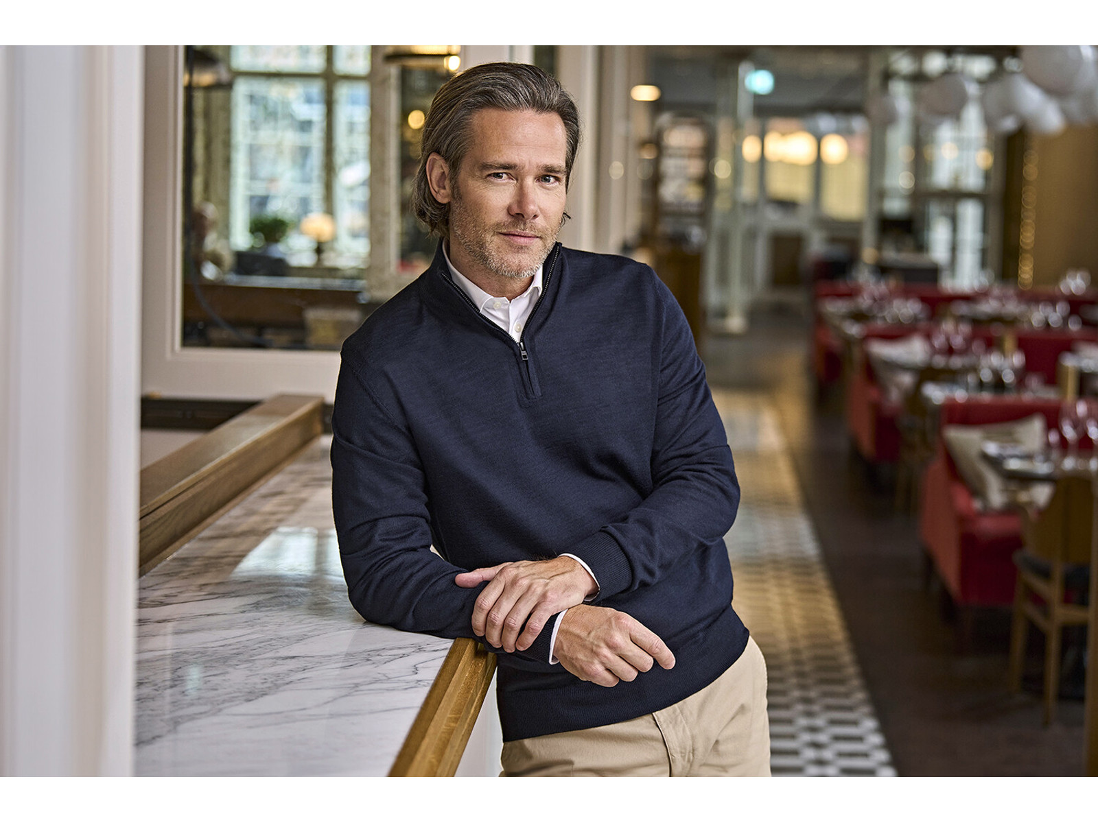 Denne Half Zip strik er lavet i en førsteklasses italiensk merino/polyakryl blanding. Det enkle og elegante design gør den perfekt i kombination med en skjorte eller en cool t-shirt.