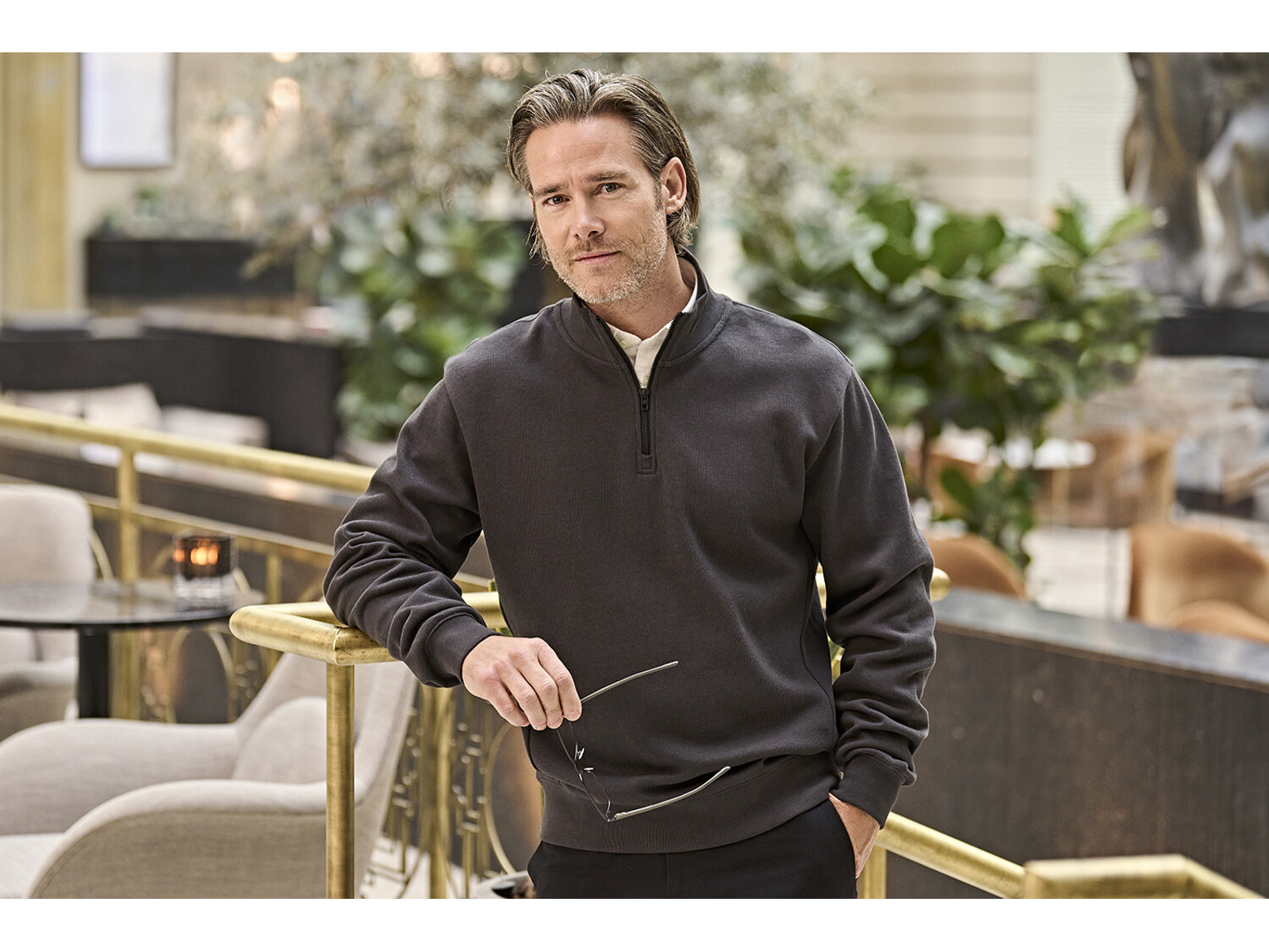 Denne Ribbed Interlock Half Zip er en cool og moderne sweat med to åbne forlommer og elastan rib. Det er en sweat der er både stilfuld, praktisk og behagelig.