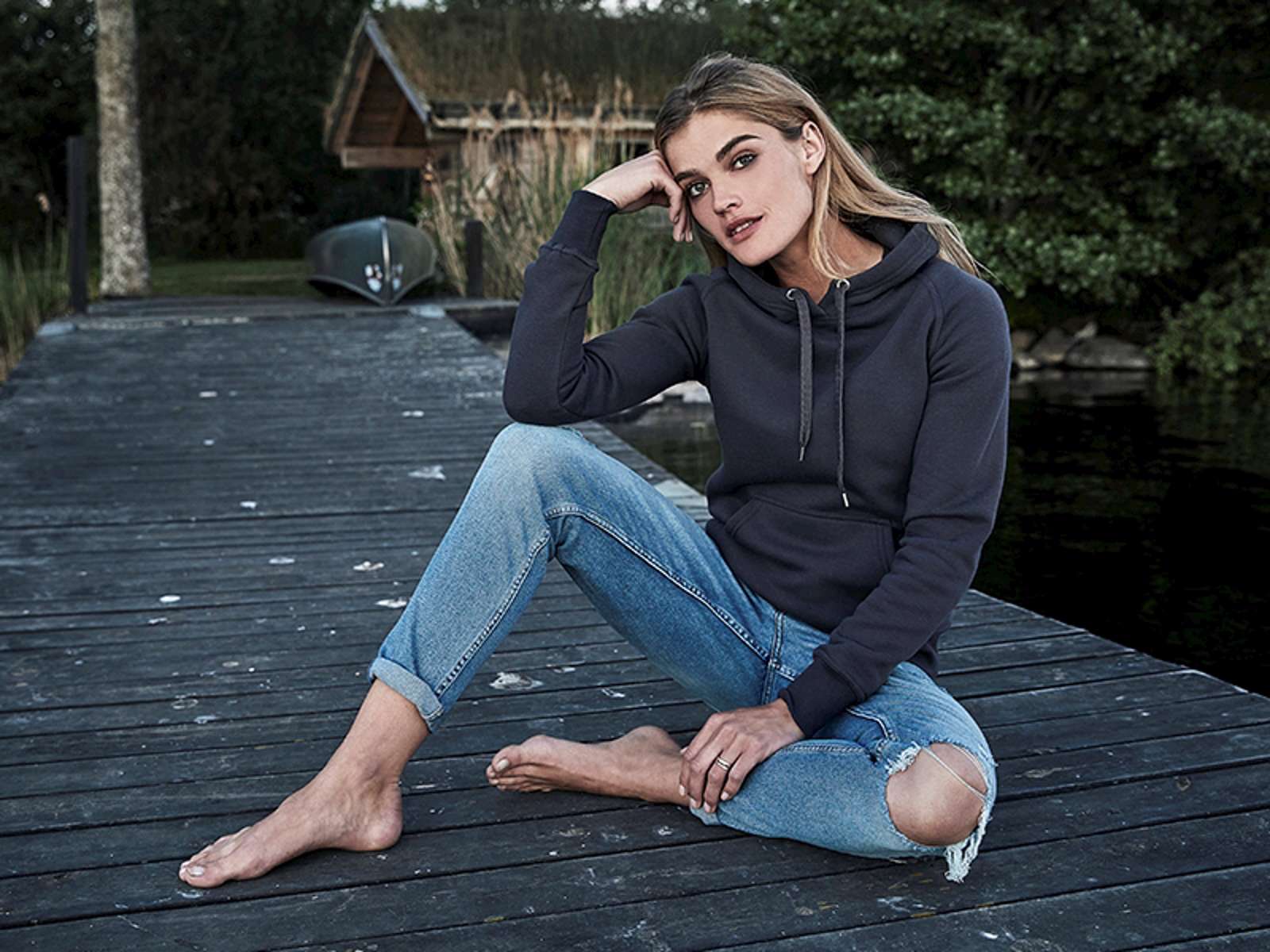 • Hooded sweatshirt i lækker kvalitet af egyptisk bomuld. Detaljer: dobbeltstikninger, dobbelt indfarvet, lycra rib, 3-tråds metervare og børstet bagside. Materiale: 70% ringspundet bomuld og 30% polyester.