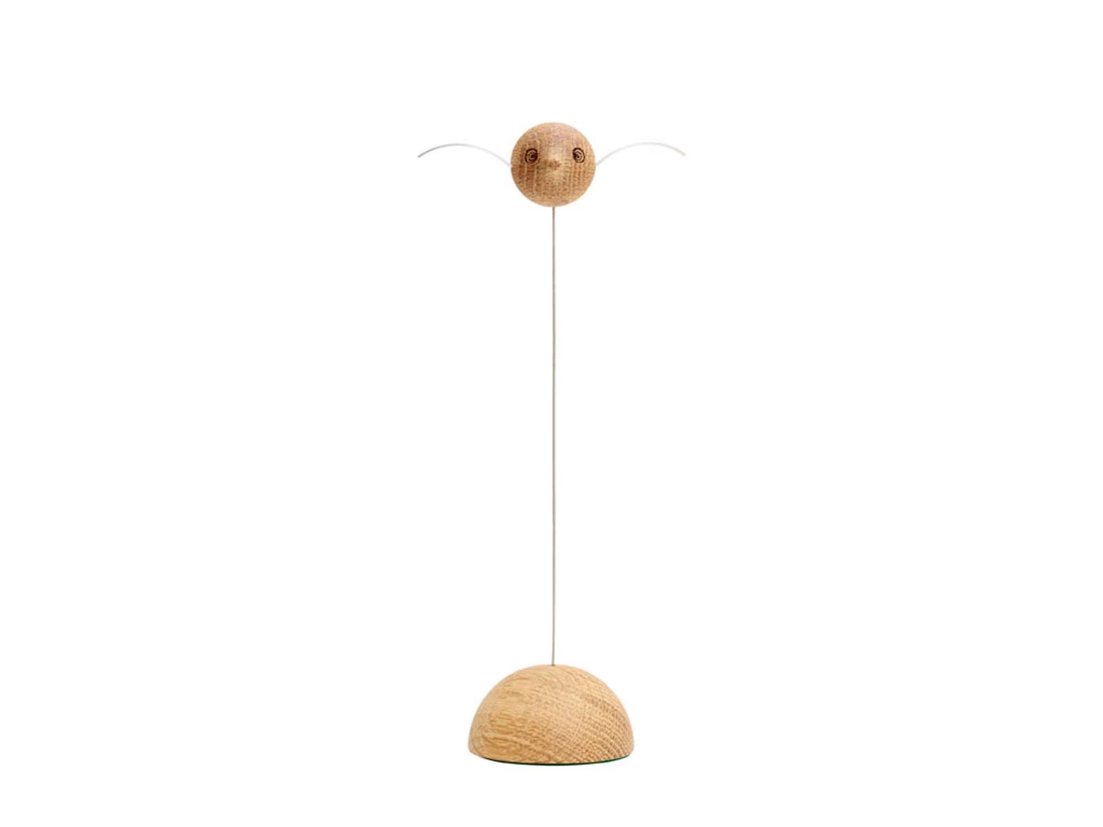 Bring naturen inden for med den søde og sjove Birdie. Fuglen er formgivet i træ med vinger og hale i aluminium og sat på en bøjelig stålpind, så den kan svæve over dit skrivebord eller i en vindueskarm. Giv den et lille puf og se, hvordan den flyver frem og tilbage og rundt og rundt.