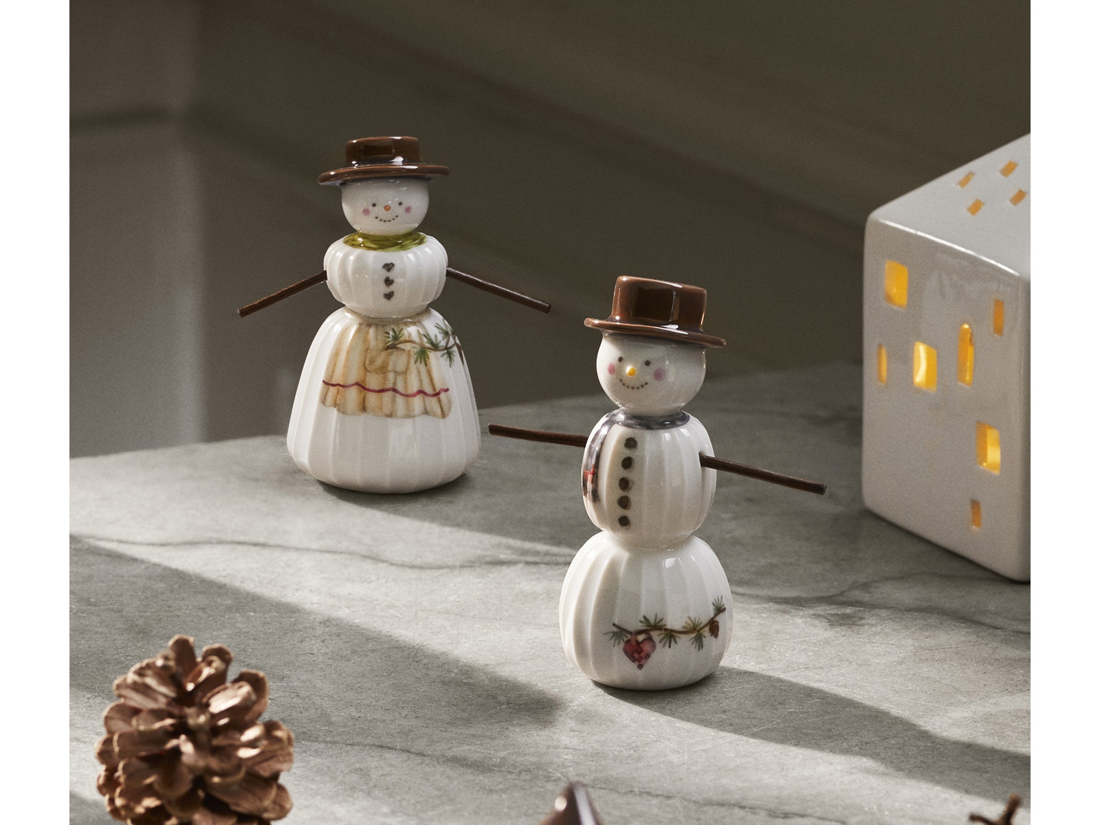 Juletraditioner og håndværkstraditioner i skøn forening. Med familien af snemænd fra Kählers juleserie Hammershøi Christmas bringer du enkelt og autentisk julestemningen ind i boligen med glade smil og hyggelige julemotiver, der matcher seriens øvrige dele og fuldender julehyggen, samtidig med at du kan nyde nostalgien i Kählers håndlavede designtraditioner. Sættet består af Snemand og Snemor.