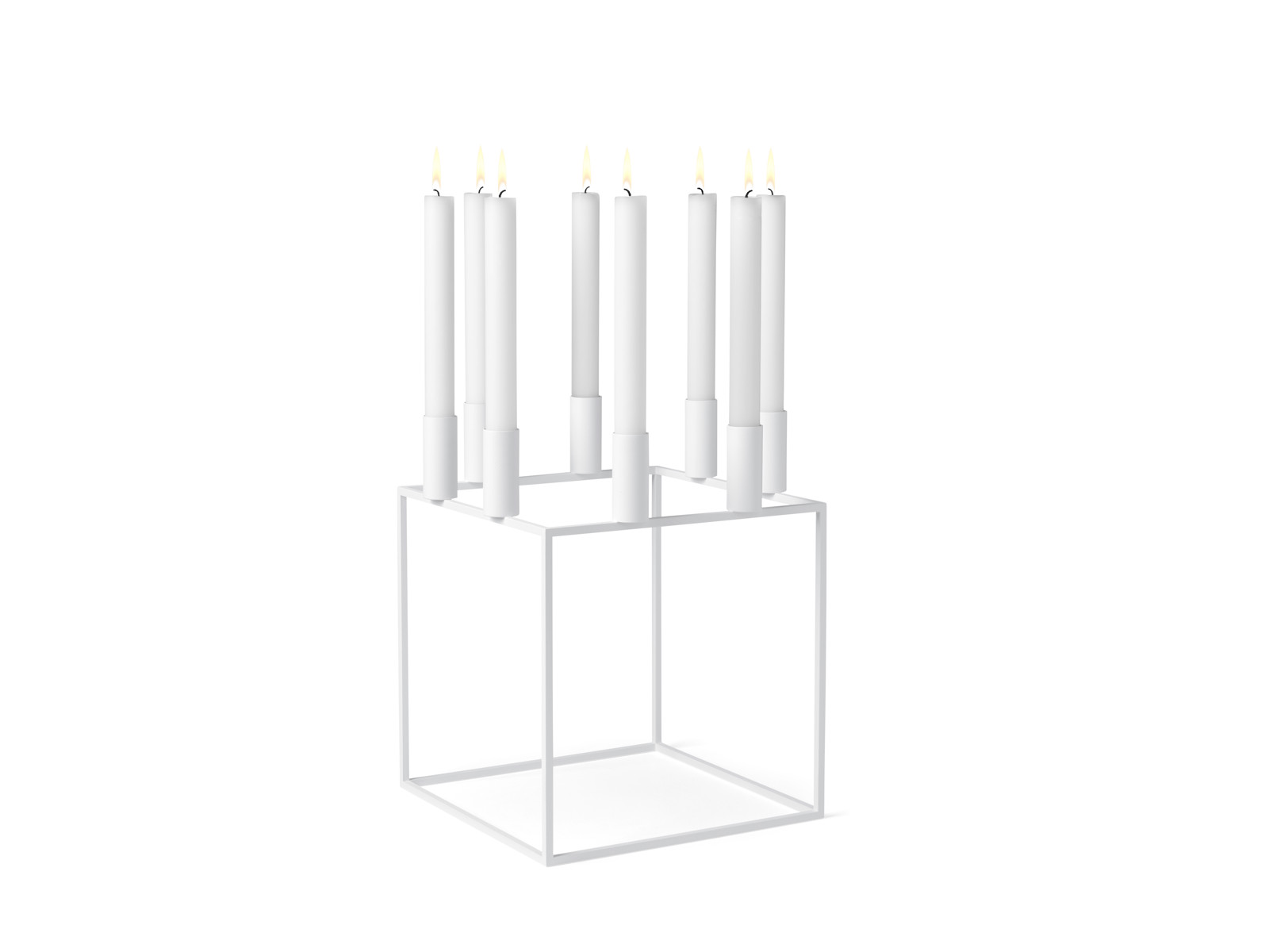 Kubus 8 er den største og mest markante lysestage i den ikoniske KUBUS-serie designet af arkitekten Mogens Lassen. Med plads til otte lys skaber den en stemningsfuld belysning, der samler rummet og giver et moderne, arkitektonisk udtryk.