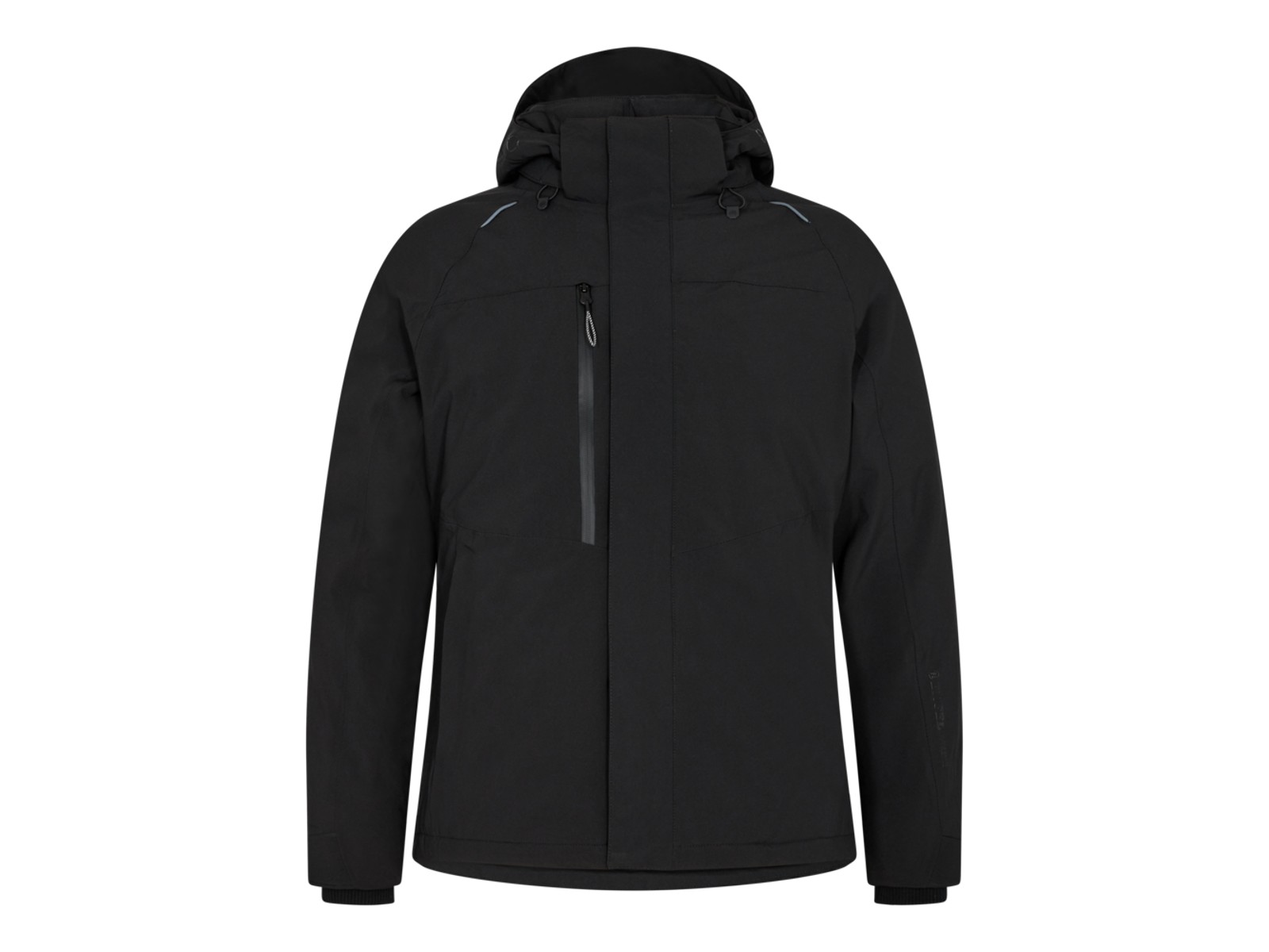 Smart og lækker vinterjakke fremstillet i et stræk- og åndbart materiale der giver øget komfort og bevægelighed. Jakken har tapede sømme og er vind- og vandtæt. Inderkraven er blød og behagelig mod huden samt vindbeskyttende. Skjult lynlås med trykknapper i front. To sidelommer lukket med lynlås. Brystlomme lukket med vandskyende lynlås. 2 indvendige lommer lukket med velcro. Jakken har aftagelig hætte og ærmer med rib vindfang – begge med reguleringsmuligheder. Forlænget bagstykke og snefang i bunden. Lynlås i for, for anbringelse af tryk. Reflekspipings for øget synlighed.