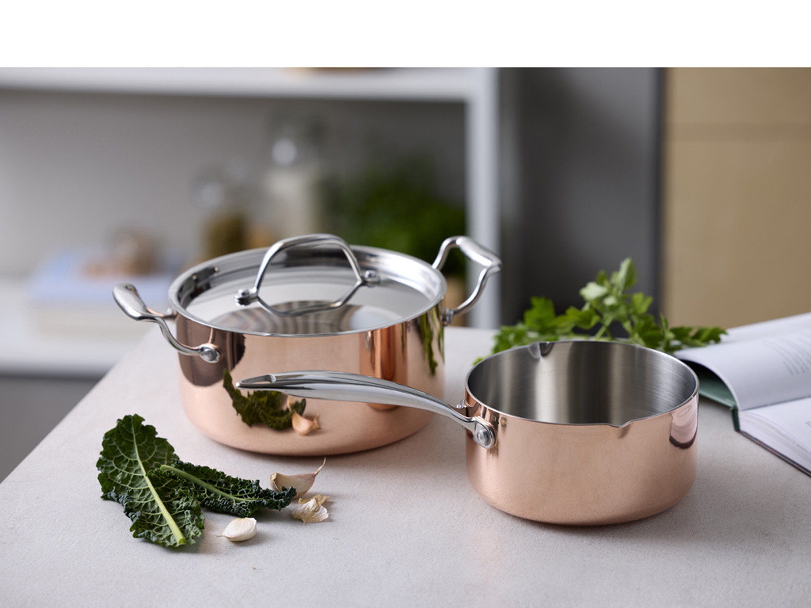 Køkkengrej af kobber er både tidløst, stilfuldt og funktionelt. Blomsterbergs kobberkasseroller, gryder og bradepander er fremstillet i kobber og rustfrit stål. En kraftig aluminiumkerne sikrer gode brugsegenskaber, og den udvendige kobber giver sammen med et flot stålgreb et eksklusivt udtryk. Passer til alle varmekilder, også induktion, og kan desuden tåle ovn op til 220 °C.