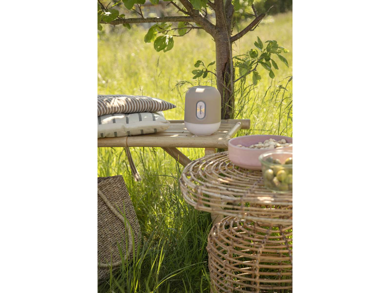 Par to Glowie højttalere for Stereo Play og få en koncertoplevelse hjemme i stuen. Derudover gør det vandafvisende design den ideel til udendørs sjov, hvad enten det er på altanen, i haven eller til en picnic.