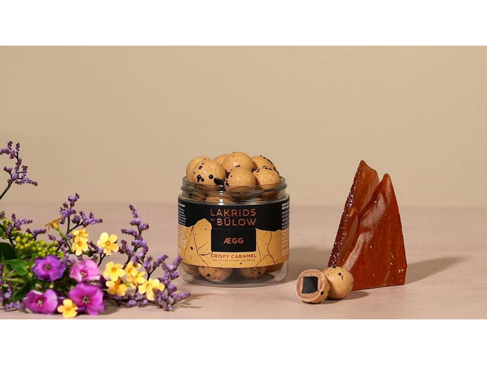 Silkeblød dulce chokolade blander sig perfekt sammen med rålakridspulver og en kerne af sød lakrids, når du bider i den smukke, plettede lysebrune sukkerskal.