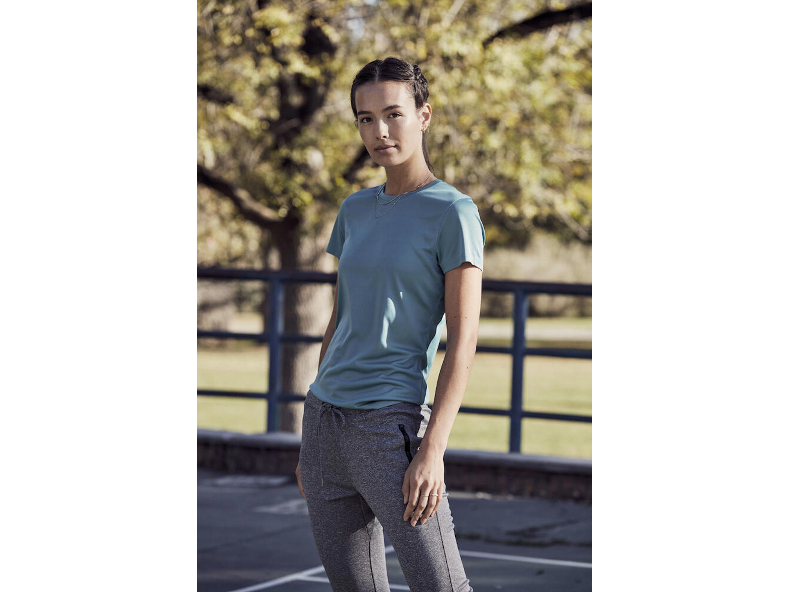 Spun dye til basispriser! T-shirt lavet med interlock strikket garn, sidesøm, forstærket nakketape og en aftagelig nakkelabel for nem ommærkning.