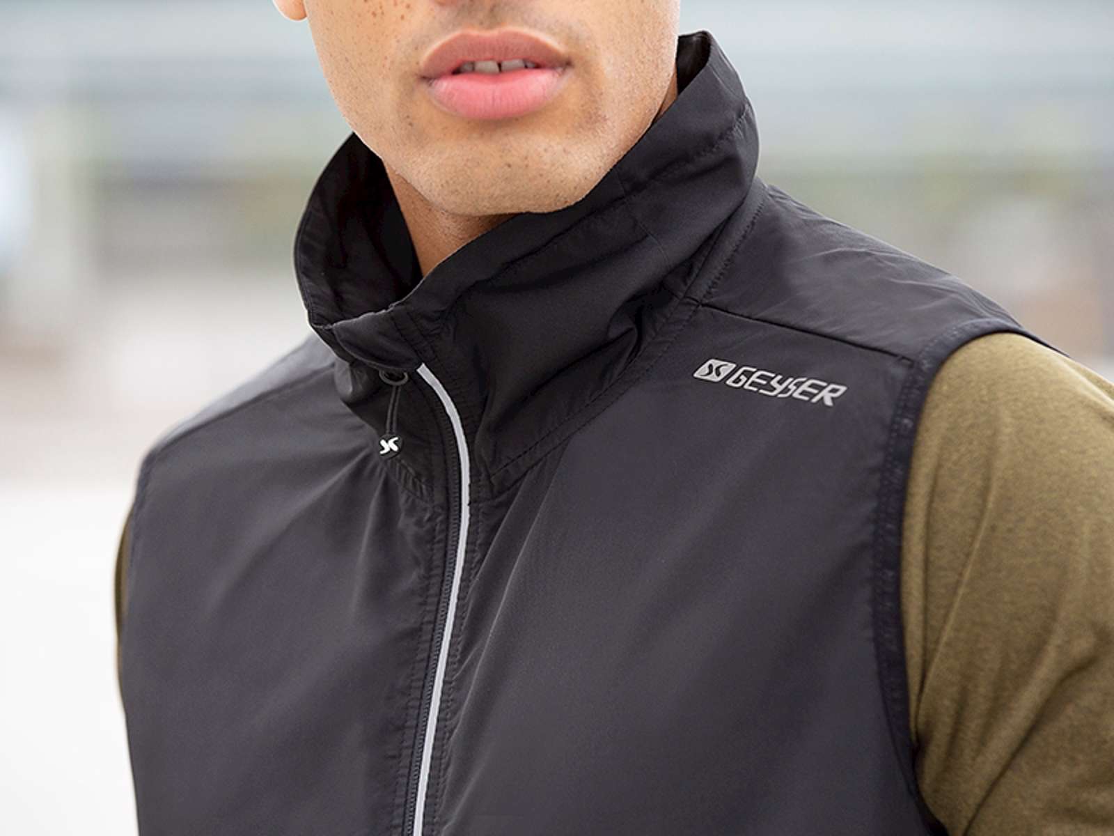 Velsiddende ultra letvægts, vind og vandafvisende løbevest. Smart og høj regulerbar krave. Elastisk bånd i bunden af vesten og ved ærmegab. Ventilationsmateriale i side. Ventilationsåbning på ryg. To praktiske skjulte lommer på front. Vesten er forsynet med reflekser på front og bag.