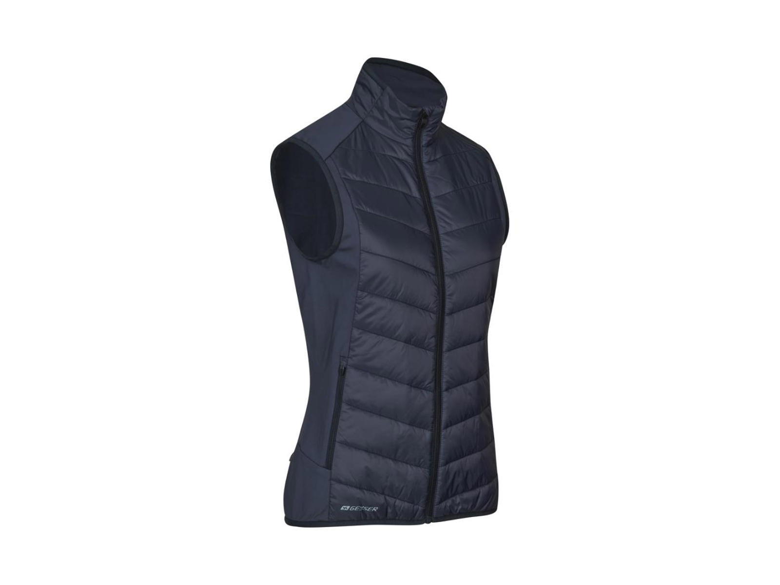 Sporty komfortabel hybrid vest. Front og bag i let quiltet vindtæt kvalitet. Vattering er THERMOLITE®T-DOWN lavet af recycled plastikfasker. Vesten er kombineret med en lækker blød 4-vejs stretch kvalitet, for optimale komfort og bevægelsesfrihed. YKK lynlås i front og sidelommer. Elastisk kantbånd i bund og ærmegab. Inderlommer. Refeks print på front.
